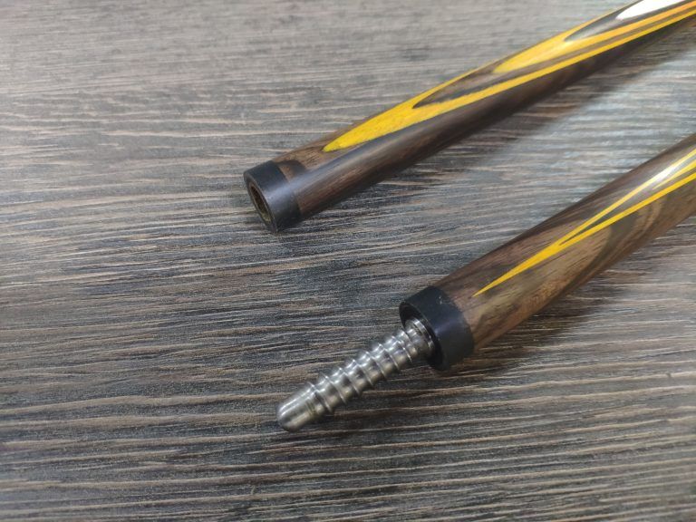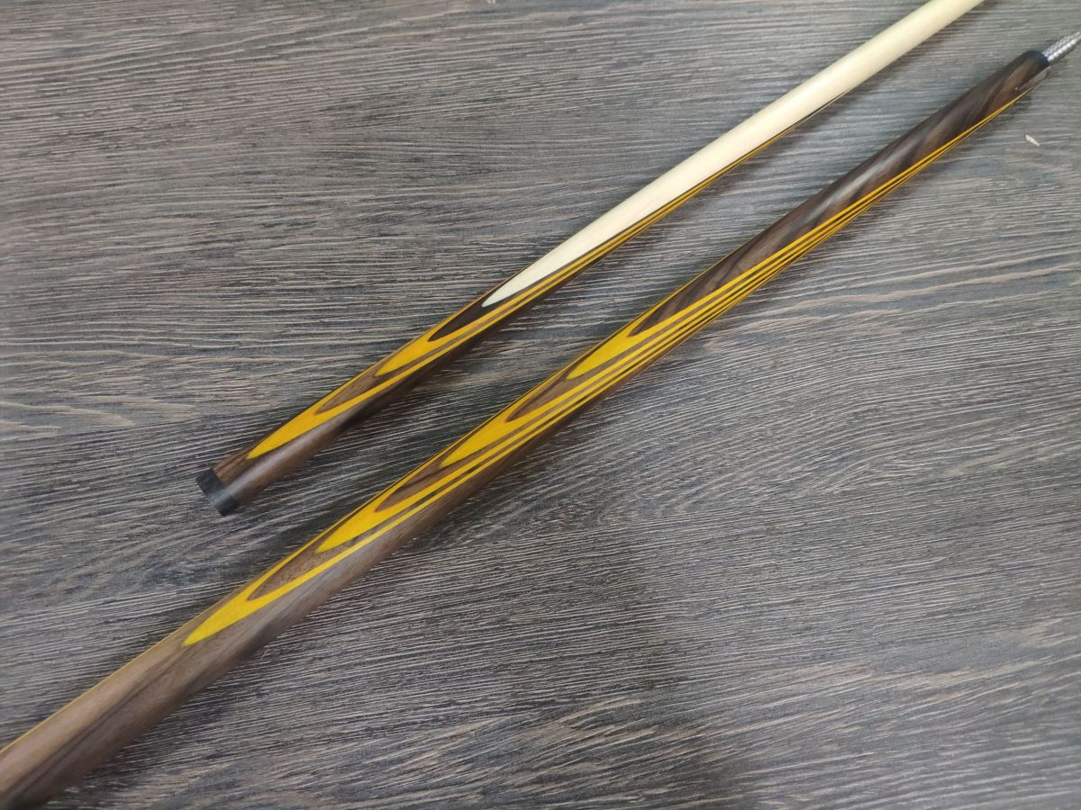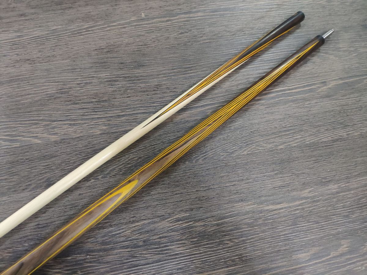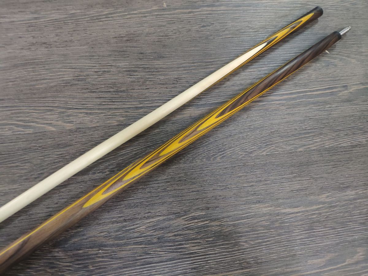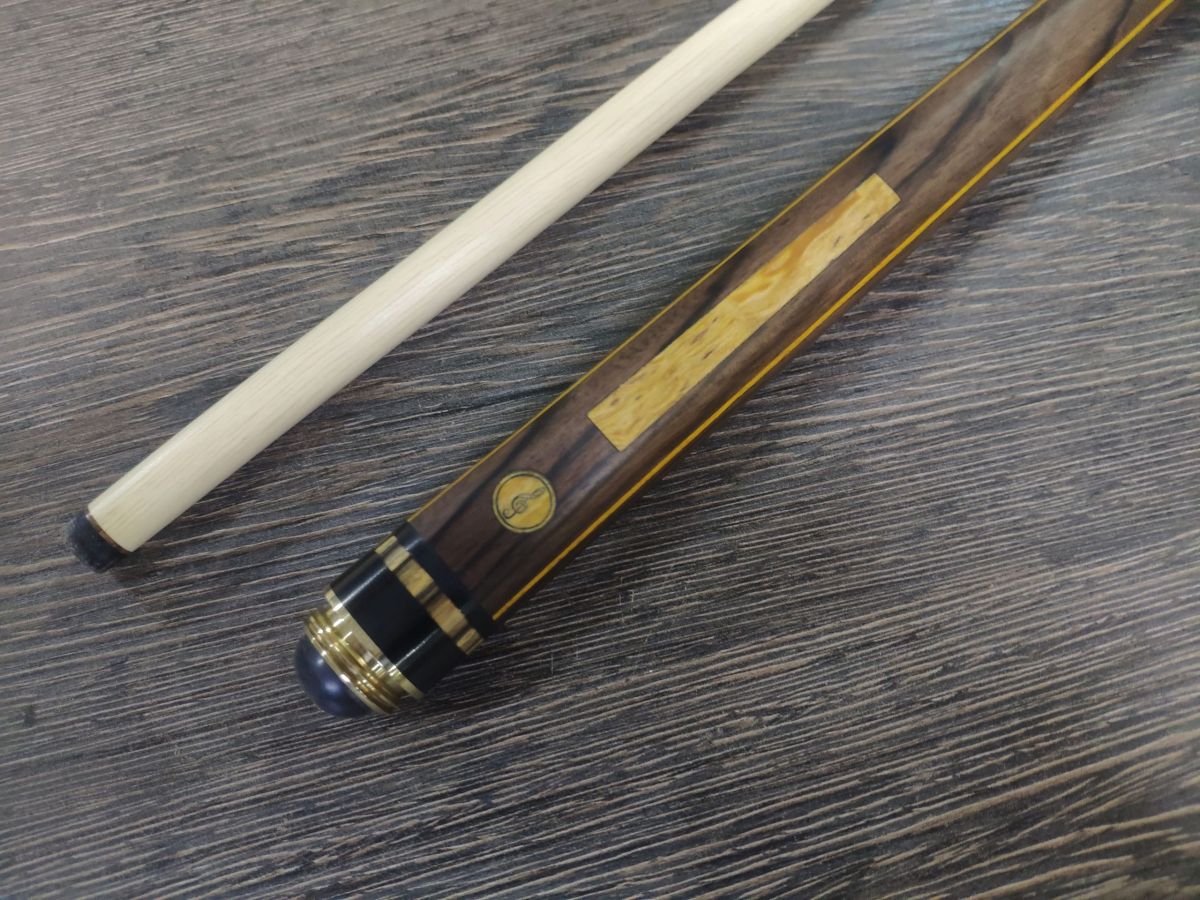 Двухсоставной бильярдный кий ручной работы для русской пирамиды «Классика» Эбен пламенный + Золотое дерево — 11 запилов. Турняк кия изготовлен из древесины эбена . «Набор» кия изготовлен из древесины эбена пламенного и золотого дерева. Шафт выполнен из прямослойного, четырехстороннего граба. Соединение Radial Pin (шнэк) титан в текстолит. Соединение кия защищают кольца жесткости, выполненные из черного композитного материала. На шафт кия установлена авторская прессованная наклейка. Турняк кия защищает бамперная чашка изготовленная из Aramith или черного композитного материала. Бамперная резинка из высококачественного, износостойкого полиуретана. Бильярдный кий «Классика» Эбен + Золотое дерево — это один из лучших киёв ручной работы выполненный в Венском стиле и изготовленный по классической технологии! Поставляется в жестком тубусе.