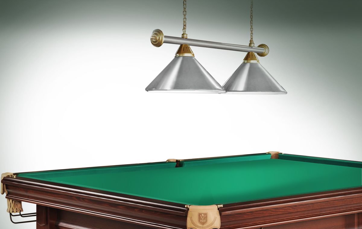Светильники Startbilliards производства ФС «Горизонт» с 2-мя плафонами комплектуются к столам 6 и 7 футов. Укомплектованы цельной металлической штангой с полимерным покрытием. Штанга изготовлена из цельной трубы, что исключает искривление конструкции. Применение керамических патронов #40;Е27#41; увеличивает срок эксплуатации светильника. Металлические плафоны крепятся с помощью зажимных пластин. Длина подвесной цепи 100 см — оптимальное расстояние для расположения источника света над игровым полем стола. В комплект включены две потолочные чашки. Штанга и плафоны поставляются в отдельных упаковках.