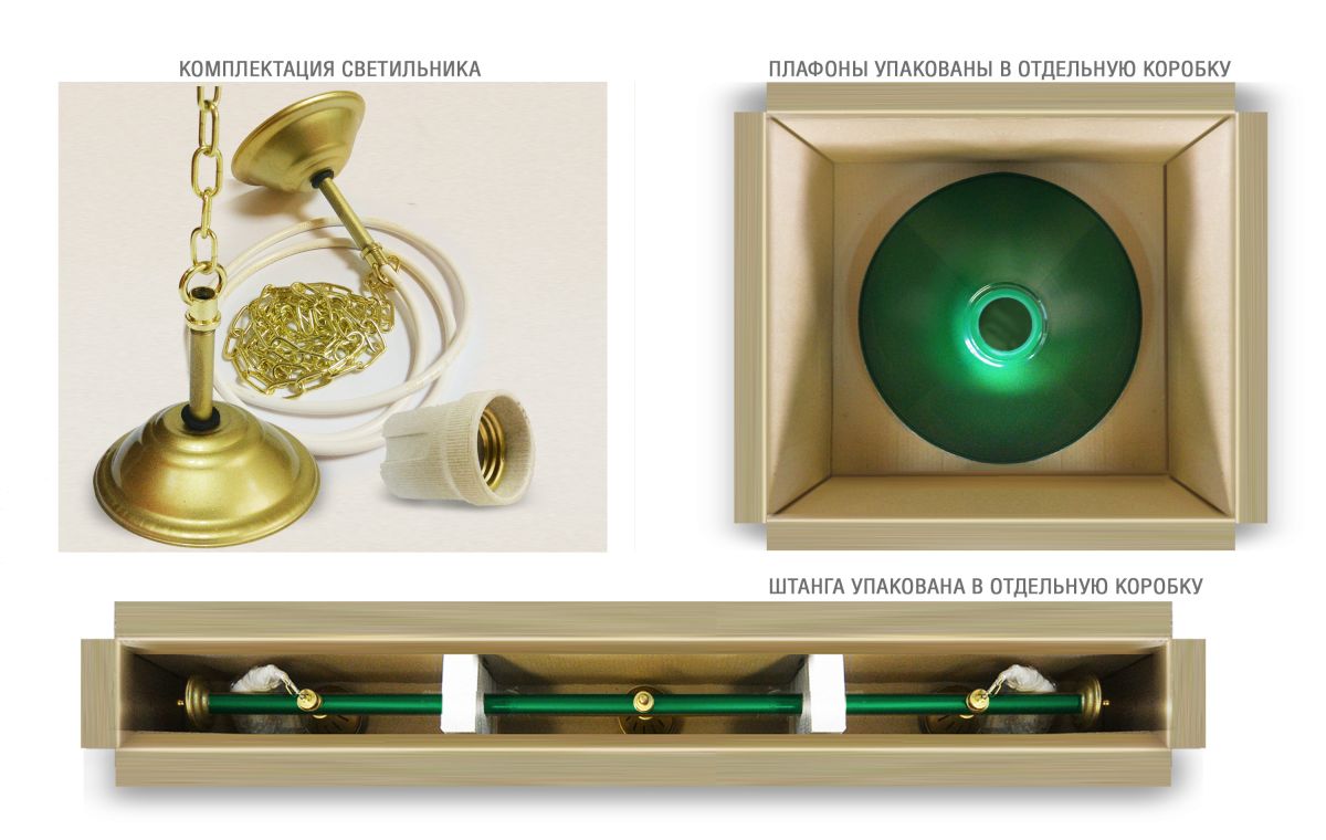 Светильники Startbilliards производства ФС «Горизонт» с 3-мя плафонами комплектуются к столам 7 и 8 футов. Укомплектованы цельной металлической штангой с полимерным покрытием. Штанга изготовлена из цельной трубы, что исключает искривление конструкции. Применение керамических патронов #40;Е27#41; увеличивает срок эксплуатации светильника. Металлические плафоны крепятся с помощью зажимных пластин. Длина подвесной цепи 100 см — оптимальное расстояние для расположения источника света над игровым полем стола. В комплект включены две потолочные чашки. Штанга и плафоны поставляются в отдельных упаковках.