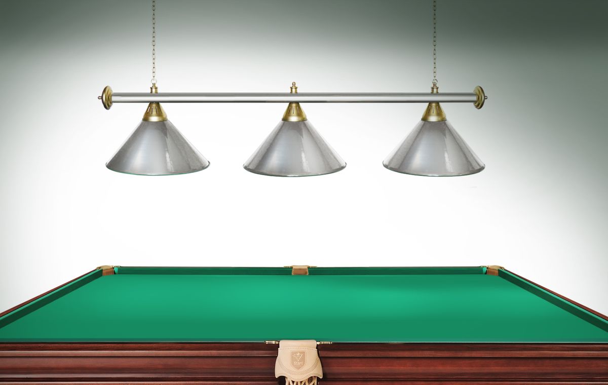 Светильники Startbilliards производства ФС «Горизонт» с 3-мя плафонами комплектуются к столам 7 и 8 футов. Укомплектованы цельной металлической штангой с полимерным покрытием. Штанга изготовлена из цельной трубы, что исключает искривление конструкции. Применение керамических патронов #40;Е27#41; увеличивает срок эксплуатации светильника. Металлические плафоны крепятся с помощью зажимных пластин. Длина подвесной цепи 100 см — оптимальное расстояние для расположения источника света над игровым полем стола. В комплект включены две потолочные чашки. Штанга и плафоны поставляются в отдельных упаковках.