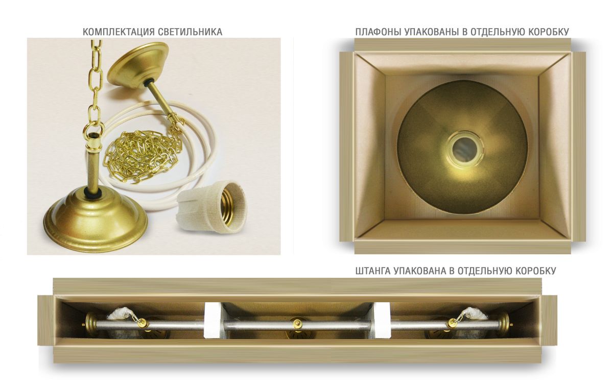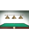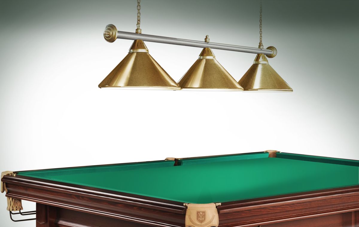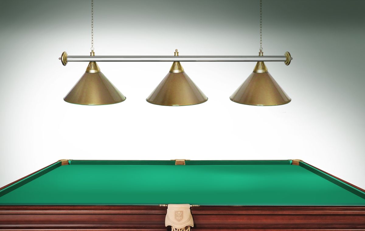 Светильники Startbilliards производства ФС «Горизонт» с 3-мя плафонами комплектуются к столам 7 и 8 футов. Укомплектованы цельной металлической штангой с полимерным покрытием. Штанга изготовлена из цельной трубы, что исключает искривление конструкции. Применение керамических патронов #40;Е27#41; увеличивает срок эксплуатации светильника. Металлические плафоны крепятся с помощью зажимных пластин. Длина подвесной цепи 100 см — оптимальное расстояние для расположения источника света над игровым полем стола. В комплект включены две потолочные чашки. Штанга и плафоны поставляются в отдельных упаковках.