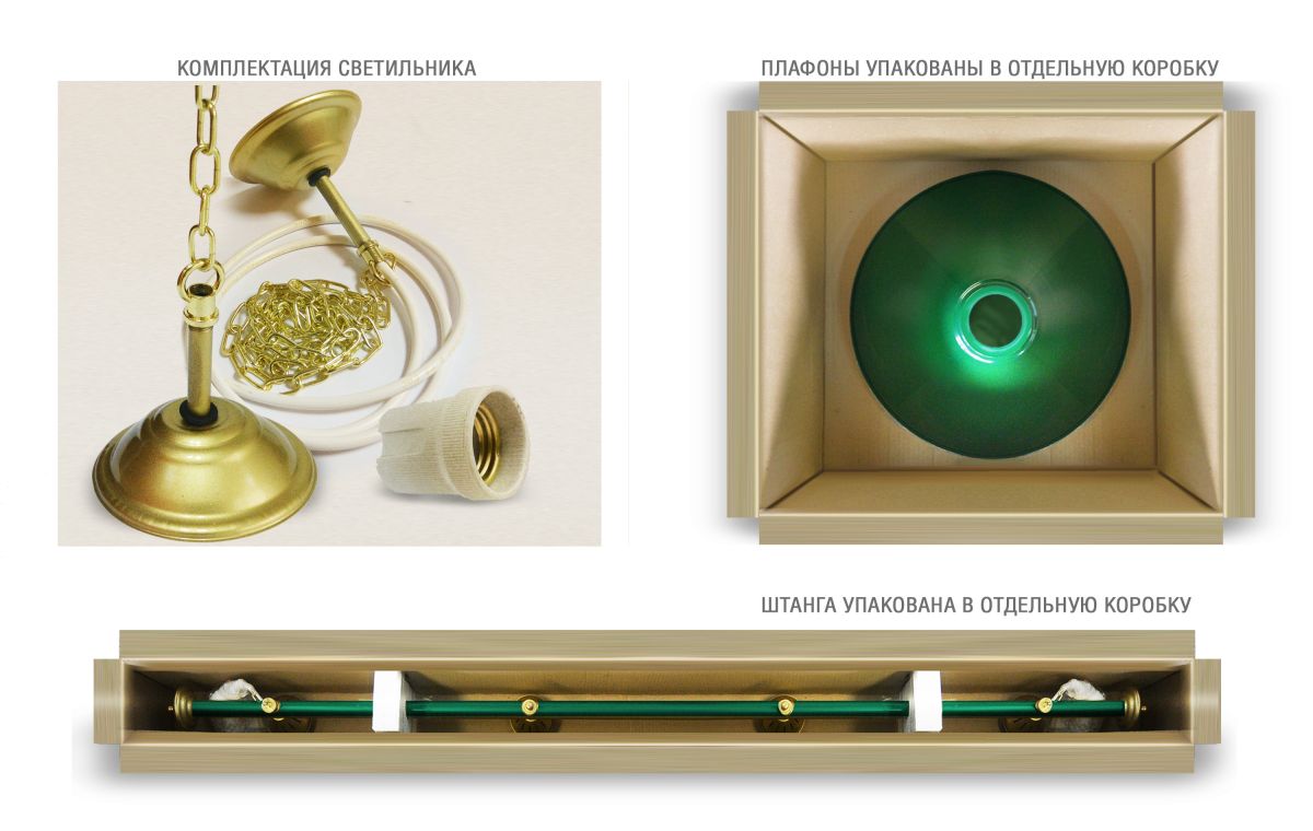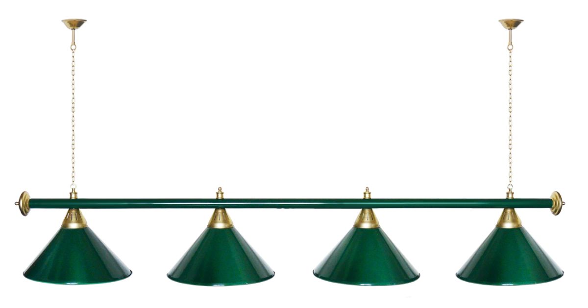 Светильники Startbilliards производства ФС «Горизонт» с 4-мя плафонами комплектуются к столам 8 и 9 футов. Укомплектованы цельной металлической штангой с полимерным покрытием. Штанга изготовлена из цельной трубы, что исключает искривление конструкции. Применение керамических патронов #40;Е27#41; увеличивает срок эксплуатации светильника. Металлические плафоны крепятся с помощью зажимных пластин. Длина подвесной цепи 100 см — оптимальное расстояние для расположения источника света над игровым полем стола. В комплект включены две потолочные чашки. Штанга и плафоны поставляются в отдельных упаковках.