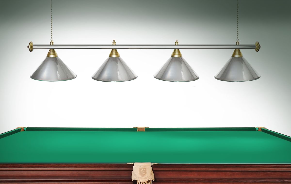 Светильники Startbilliards производства ФС «Горизонт» с 4-мя плафонами комплектуются к столам 8 и 9 футов. Укомплектованы цельной металлической штангой с полимерным покрытием. Штанга изготовлена из цельной трубы, что исключает искривление конструкции. Применение керамических патронов #40;Е27#41; увеличивает срок эксплуатации светильника. Металлические плафоны крепятся с помощью зажимных пластин. Длина подвесной цепи 100 см — оптимальное расстояние для расположения источника света над игровым полем стола. В комплект включены две потолочные чашки. Штанга и плафоны поставляются в отдельных упаковках.