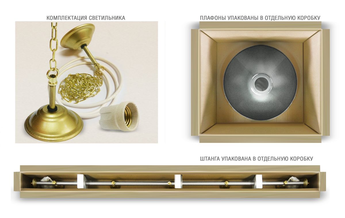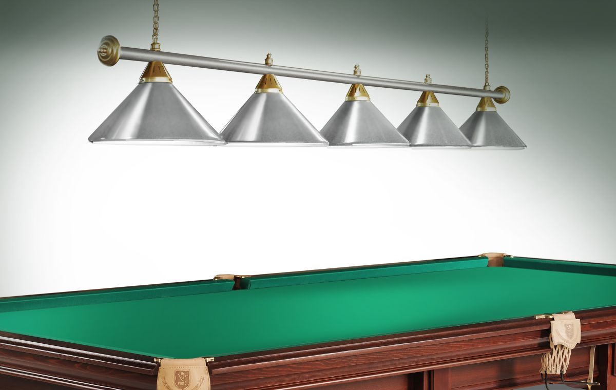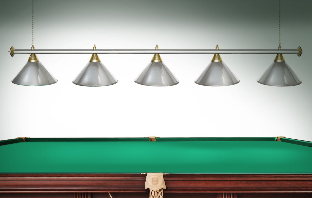 Светильники Startbilliards производства ФС «Горизонт» с 5-ю плафонами комплектуются к столам 10 футов. Укомплектованы цельной металлической штангой с полимерным покрытием. Штанга изготовлена из цельной трубы, что исключает искривление конструкции. Применение керамических патронов #40;Е27#41; увеличивает срок эксплуатации светильника. Металлические плафоны крепятся с помощью зажимных пластин. Длина подвесной цепи 100 см — оптимальное расстояние для расположения источника света над игровым полем стола. В комплект включены две потолочные чашки. Штанга и плафоны поставляются в отдельных упаковках.