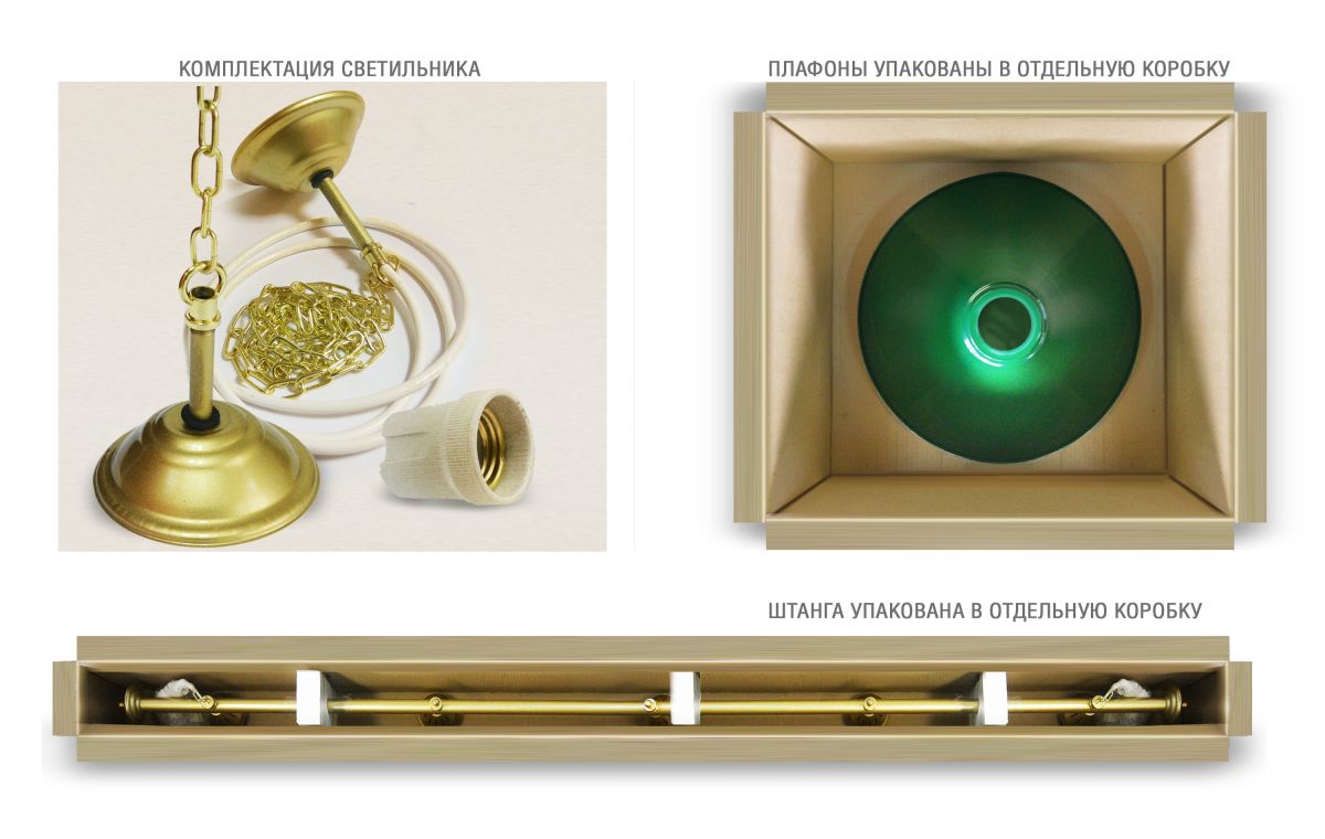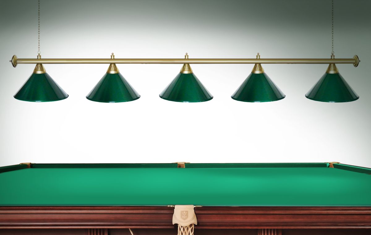 Светильники Startbilliards производства ФС «Горизонт» с 5-ю плафонами комплектуются к столам 10 футов. Укомплектованы цельной металлической штангой с полимерным покрытием. Штанга изготовлена из цельной трубы, что исключает искривление конструкции. Применение керамических патронов #40;Е27#41; увеличивает срок эксплуатации светильника. Металлические плафоны крепятся с помощью зажимных пластин. Длина подвесной цепи 100 см — оптимальное расстояние для расположения источника света над игровым полем стола. В комплект включены две потолочные чашки. Штанга и плафоны поставляются в отдельных упаковках.