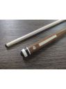 Турняк кия изготовлен из древесины сукупиры. Обратный запил на турняке выполнен из древесины сукупиры с декоративной вставкой из элфоринн ( искусственная кость) на плоскости и лого. Набор кия выполнен из древесины черного граба, мовингу и падука по принципу 4-х стороннего запила, и образует 8 лучей.