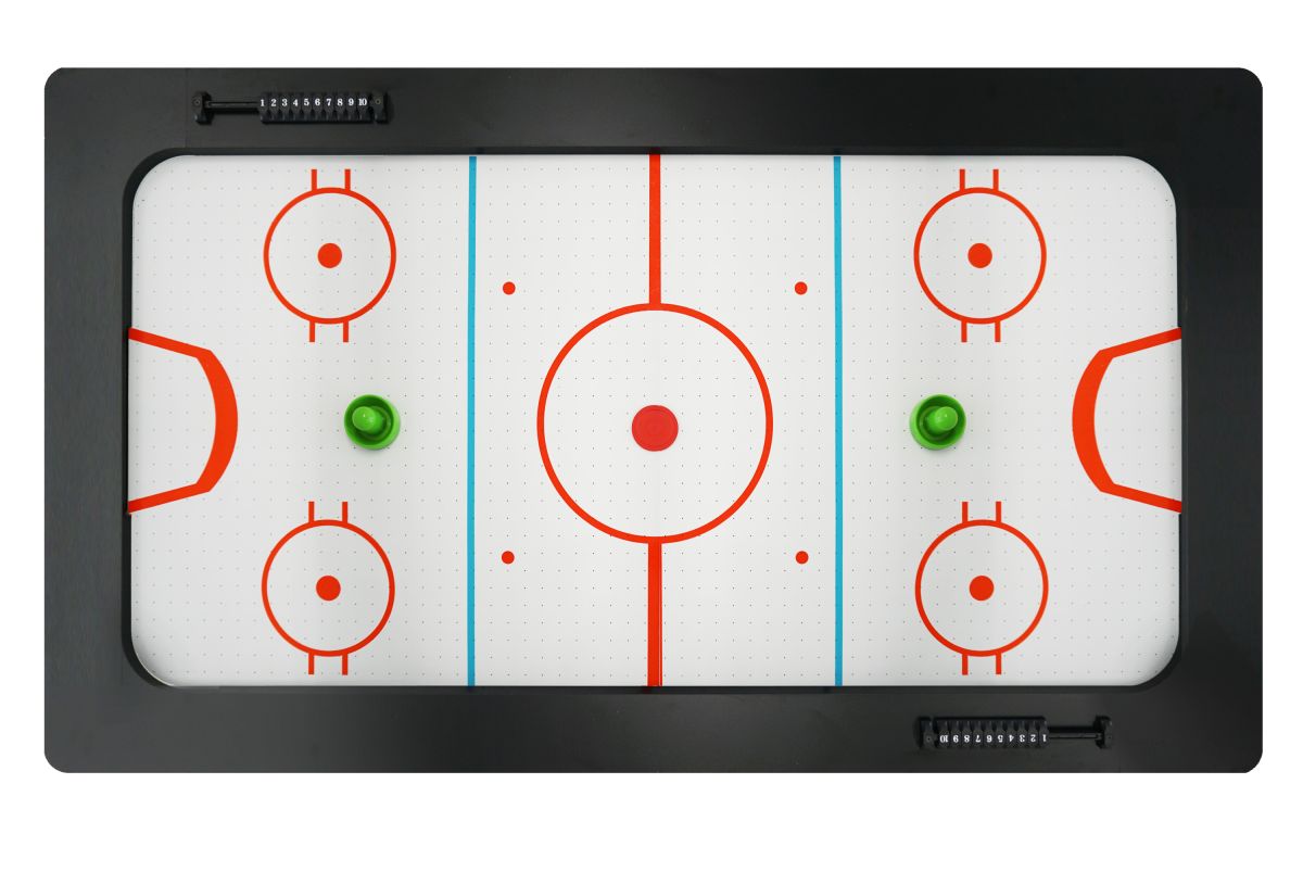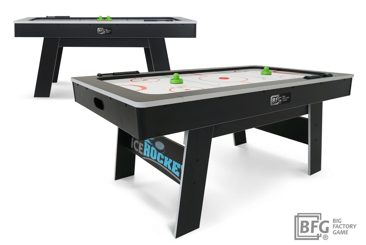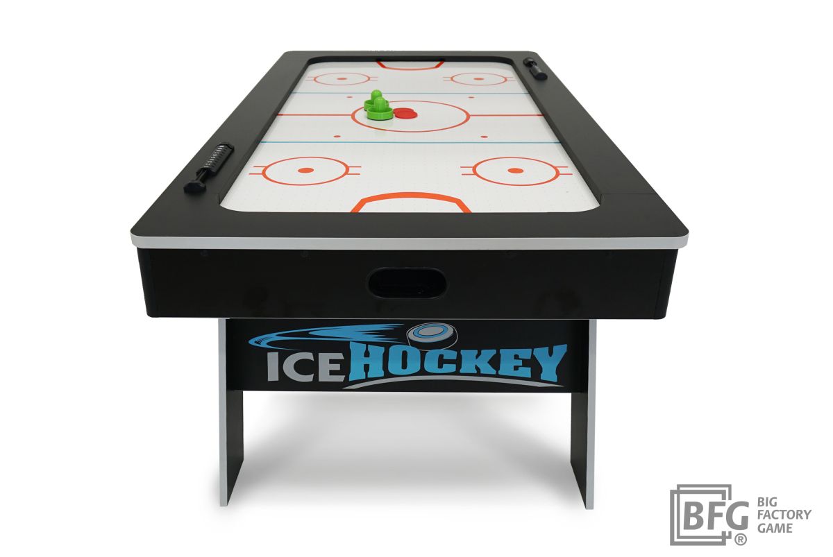 Аэрохоккей BFG ICE TIME 4 разработан и изготовлен специалистами инженерами компании BFG. Самая важная деталь аэрохоккея это - игровое поле. От качества и метода производства этой детали зависит, насколько интересно, захватывающе и увлекательно будет проходить игры. В наших игровых полях применены сразу две новейшие технологии, разработанные инженерами и технологами компании BFG. 1. 3d layer. Поверхность игрового поля состоит из 3 слоев, поочередно соединенных друг с другом. Данный метод позволяет нанести разметку между вторым и третьим слоем, что исключает истирание нанесенного изображения во время всего срока службы. Кроме того используемые материалы обеспечивают длительный период эксплуатации и улучшают скольжение шайбы. 2. Smart Flow. Благодаря уникальной системе распределения воздушного потока, вентилятор, питающийся от сети 220 вольт нагнетаете воздух по всей игровой поверхности, исключая появление мертвых зон во время игры. Шайба скользит как на профессиональном оборудовании. Игровой стол обладает устойчивой конструкцией, что исключает любые раскачивания во время игры. Производимый нами аэрохоккей на 90#37; состоит из отечественных комплектующих, а это дает возможность быстрого и качественного сервисного обслуживания. Каждый стол оборудован удобными механическими счетами, в комплекте поставляется 2 биты и 4 шайбы. Упаковка имеет жесткое дно, что повышает сохранность товара во время хранения или транспортировки.