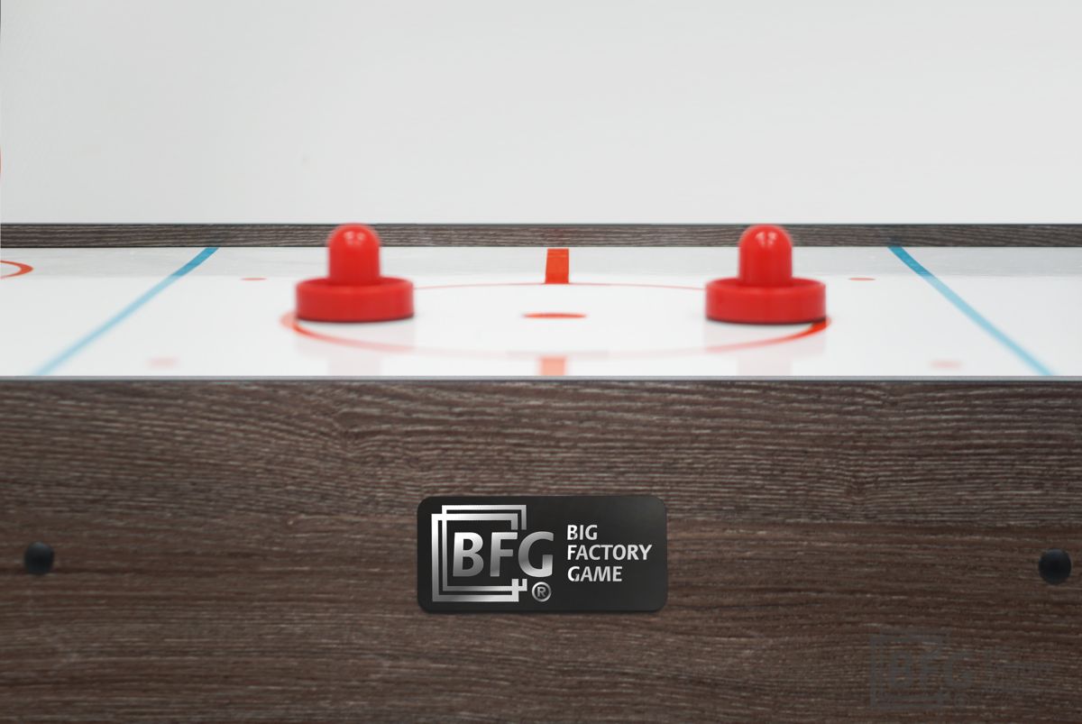 Аэрохоккей BFG Ice Transform 5 Light разработан и изготовлен специалистами инженерами компании BFG. Самая важная деталь аэрохоккея это - игровое поле. От качества и метода производства этой детали зависит, насколько интересно, захватывающе и увлекательно будет проходить игры. В наших игровых полях применены сразу две новейшие технологии, разработанные инженерами и технологами компании BFG. 1. 3d layer. Поверхность игрового поля состоит из 3 слоев, поочередно соединенных друг с другом. Данный метод позволяет нанести разметку между вторым и третьим слоем, что исключает истирание нанесенного изображения во время всего срока службы. Кроме того используемые материалы обеспечивают длительный период эксплуатации и улучшают скольжение шайбы. 2. Smart Flow. Благодаря уникальной системе распределения воздушного потока, вентилятор, питающийся от сети 220 вольт нагнетаете воздух по всей игровой поверхности, исключая появление мертвых зон во время игры. Шайба скользит как на профессиональном оборудовании. Игровой стол