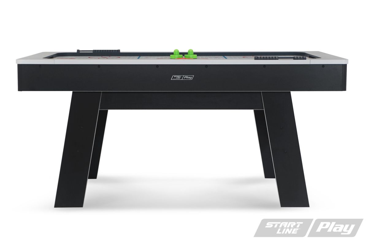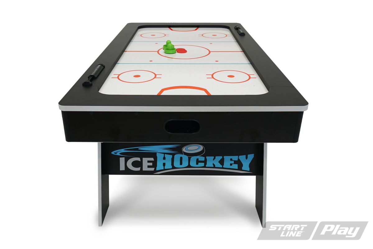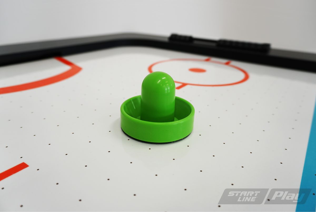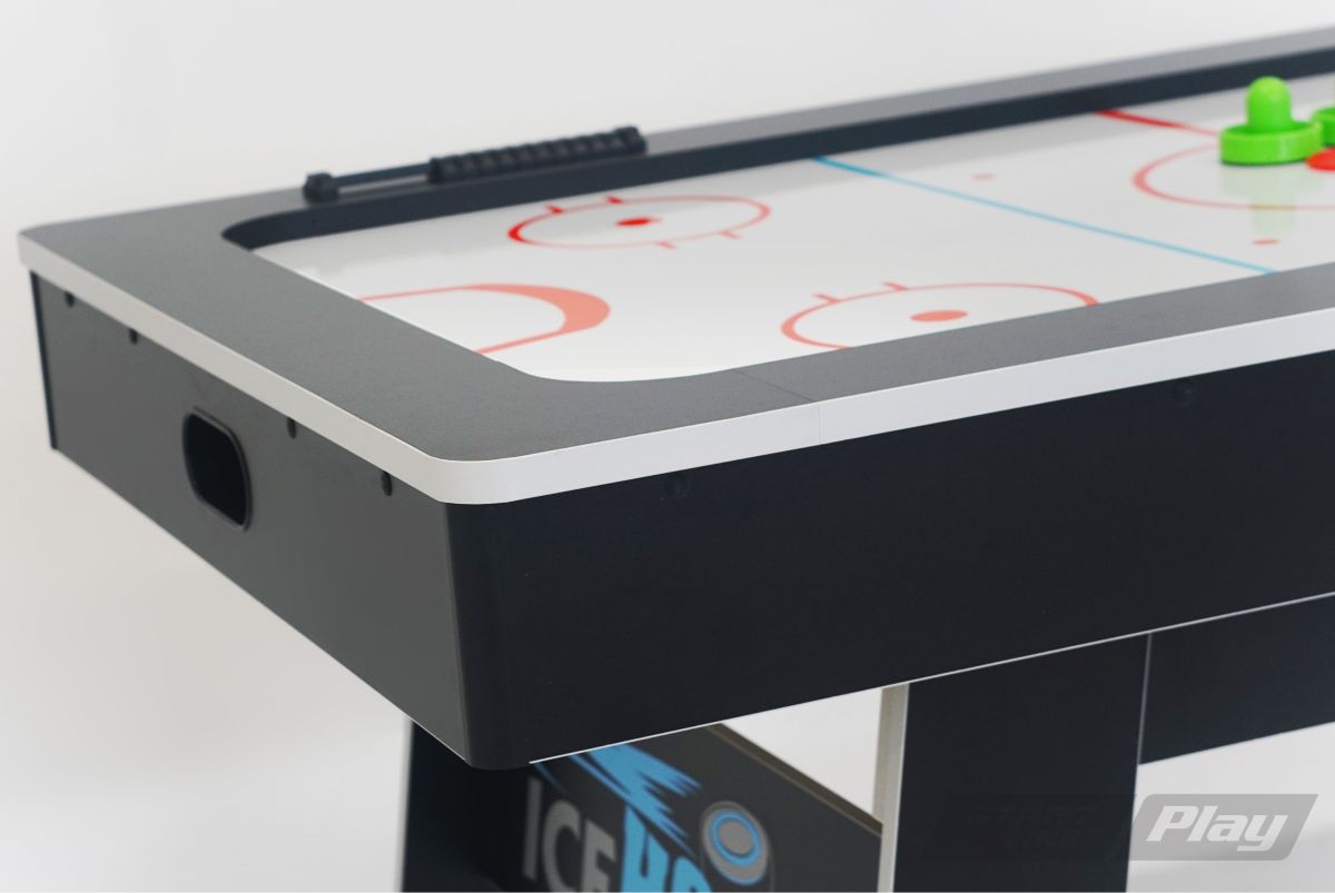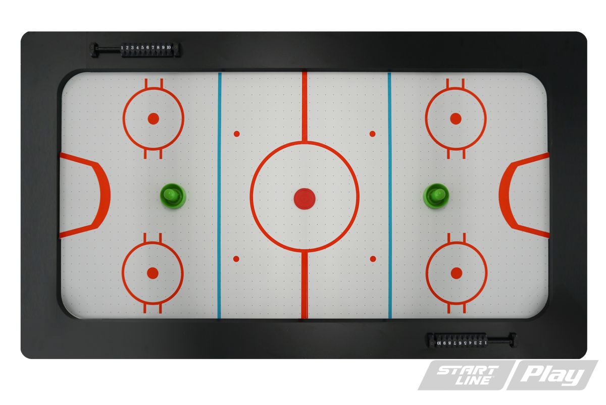 Стол ICE TIME разработаны и изготовлены специалистами инженерами компании Start Line PLAY. Самая важная деталь аэрохоккея это - игровое поле. От качества и метода производства этой детали зависит, насколько интересно, захватывающе и увлекательно будет проходить игры. В наших игровых полях применены сразу две новейшие технологии, разработанные инженерами и технологами компании Start Line PLAY. 1. 3d layer. Поверхность игрового поля состоит из 3 слоев, поочередно соединенных друг с другом. Данный метод позволяет нанести разметку между вторым и третьим слоем, что исключает истирание нанесенного изображения во время всего срока службы. Кроме того используемые материалы обеспечивают длительный период эксплуатации и улучшают скольжение шайбы. 2. Smart Flow. Благодаря уникальной системе распределения воздушного потока, вентилятор, питающийся от сети 220 вольт нагнетаете воздух по всей игровой поверхности, исключая появление мертвых зон во время игры. Шайба скользит как на профессиональном оборудовании. Игровой стол обладает устойчивой конструкцией, что исключает любые раскачивания во время игры. Производимый нами аэрохоккей на 90#37; состоит из отечественных комплектующих, а это дает возможность быстрого и качественного сервисного обслуживания. Каждый стол оборудован удобными механическими счетами, в комплекте поставляется 2 биты и 4 шайбы. Упаковка имеет жесткое дно, что повышает сохранность товара во время хранения или транспортировки.