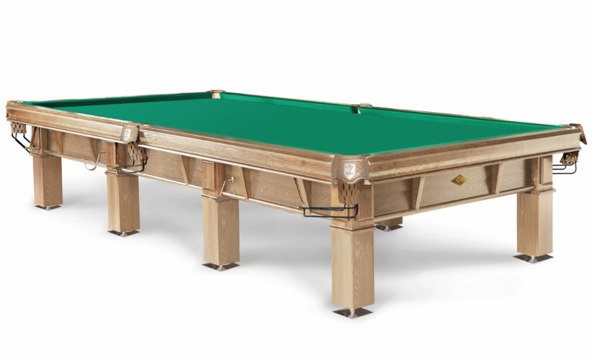 Модель также усовершенствована усиленным крепежом, в изготовлении используется исключительно массив дерева. На столе такого уровня используются только латунные скобы на лузы и латунные чашки опор, сукно Iwan Simonis 760 Yellow green и амортизаторы Start Super Pro, рекомендованные ФБСР для проведения чемпионатов. Стол выпускается только в размере 12 футов. Этот бильярд изготовлен из эксклюзивных материалов, с высочайшим уровнем качества каждого элемента, что по достоинству оценят профессионалы и суперпрофессионалы бильярдной игры!