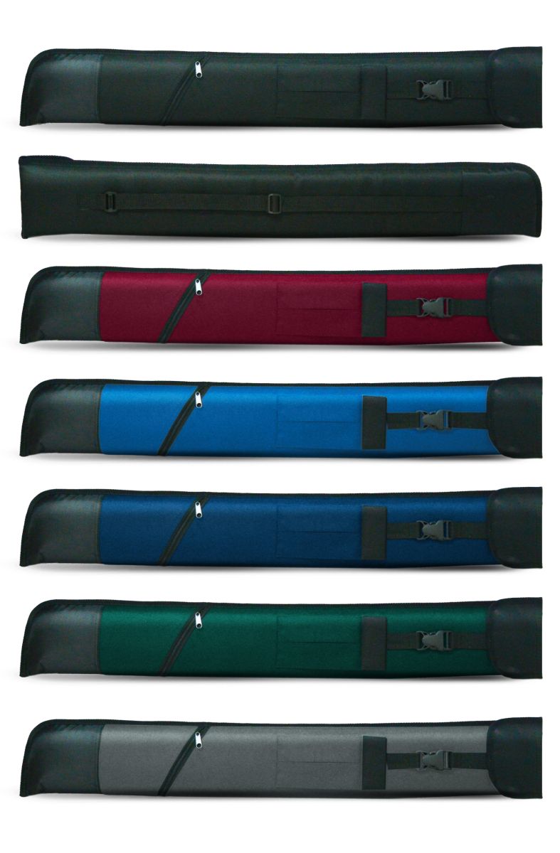 Чехол предназначен для одного кия. Отделка - высококачественный синтетический материал. Торцевая застежка #40;молния#41; , ручка для переноски,накладной карман. Цветовая палитра: Черный,черно-красный, черно- голубой, черно-изумрудный, , черно-серый, черно-синий;