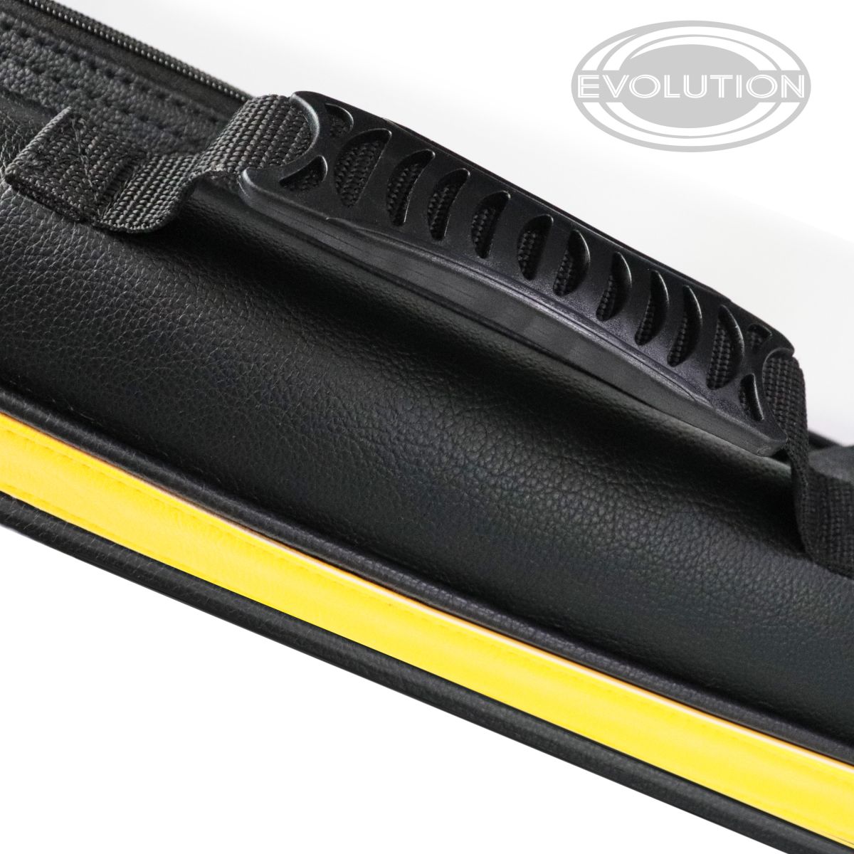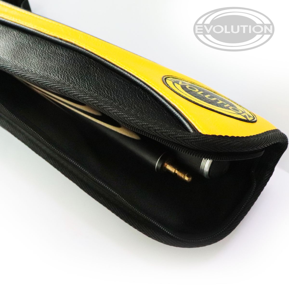 Чехол MASTER включает в себя секцию для хранения кия, два кармана на застежке «молния» под удлинитель и аксессуары, прочную ручку и наплечный ремень для переноски. Внутренняя поверхность покрыта прочной мягкой тканью, чехол надежно защитит кий от ударов и царапин, от пыли и солнца. Модель предназначена для хранения и транспортировки одного двусоставного кия в разобранном виде, имеет жесткий каркас. Линейку чехлов для киев EVOLUTION отличает современный конструктив и яркий дизайн, построенный на контрасте черно-желтых цветов. Все модели чехлов изготовлены из высококачественной и износостойкой экокожи.