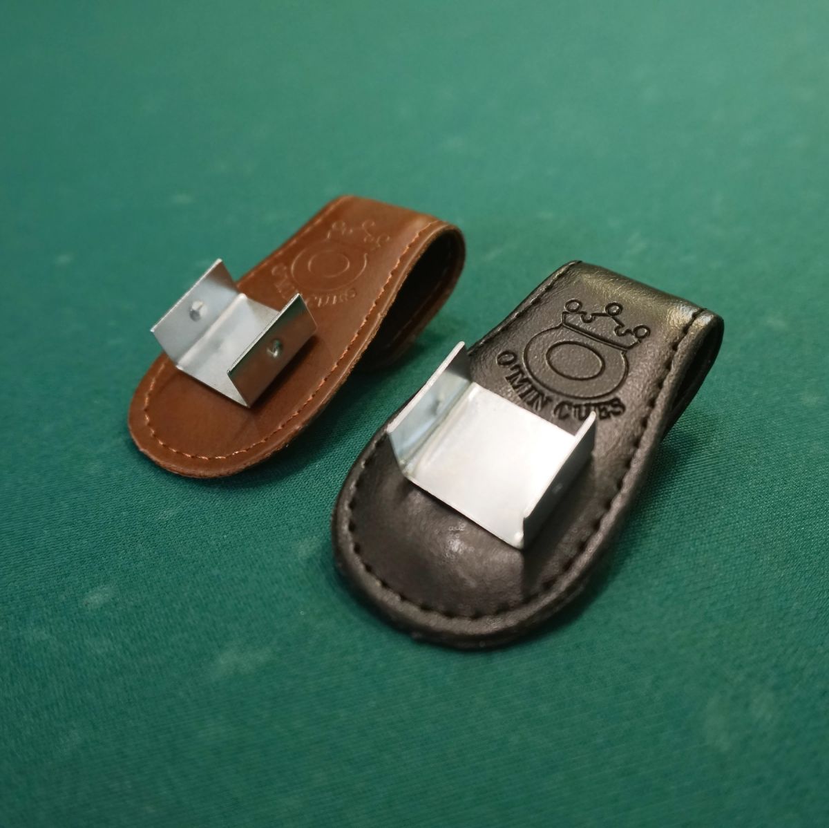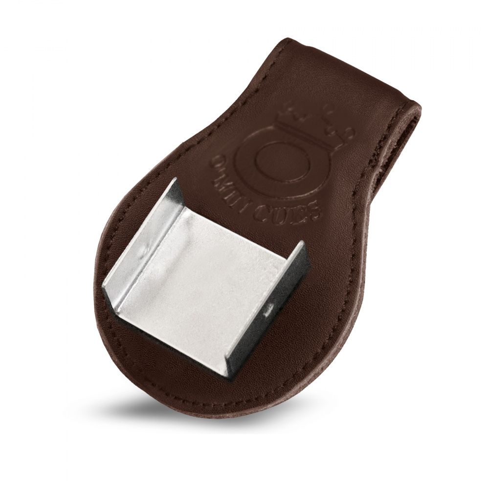 Держатель для мела — полезный аксессуар для любителей игры в бильярд, позволяющий держать мел во время игры под рукой. Держатель выполнен из кожи коричневого цвета, мел помещается в металлический кейс отрытого типа, который плотно крепится к основе. Благодаря компактному размеру такой держатель можно легко разместить на кармане или ремне брюк и всегда иметь доступ к девайсу.