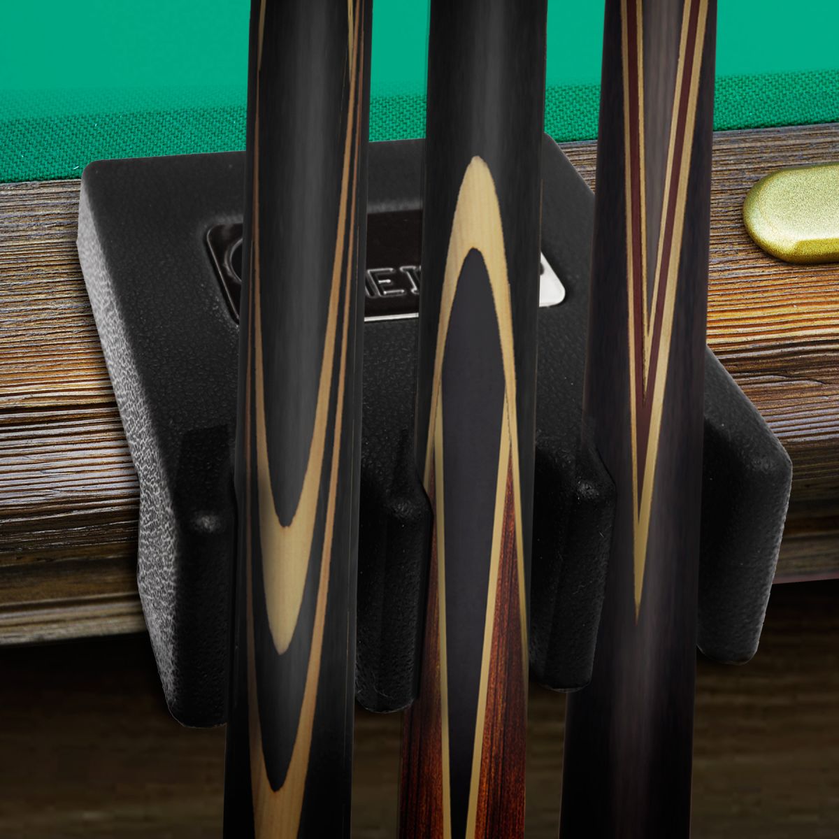 Держатель для кия StartBilliards сделан специальной формы и имеет внутри себя металлический противовес способный удерживать на краю борта до 3 киев.