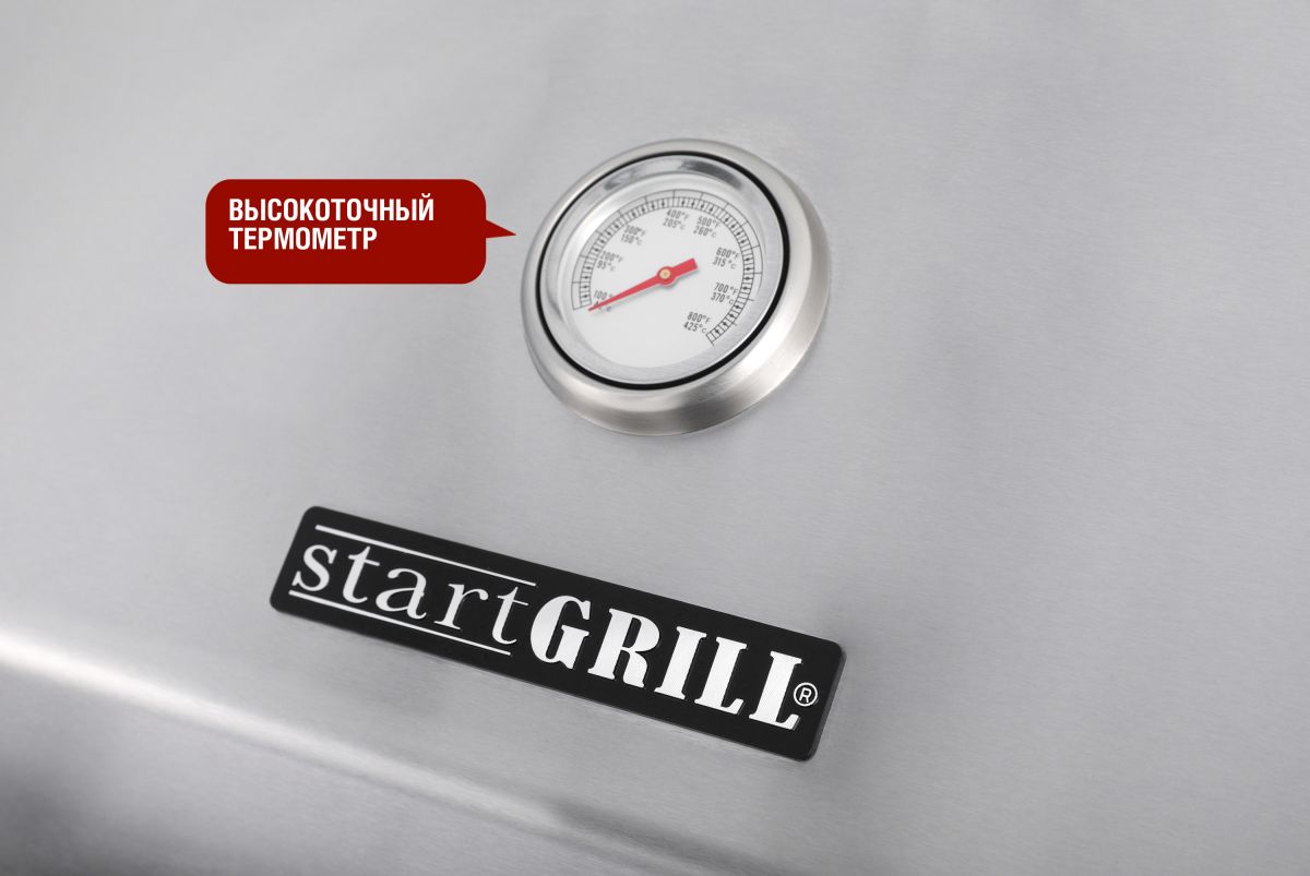 Газовый гриль PRIME PRO 510 от Start Grill создан для тех, кто любит готовить с комфортом. Гриль имеет четыре основные горелки, две дополнительные инфракрасные горелки и большую площадь жарочной поверхности. Это обеспечивает равномерное распределение основного тепла и быстрое нагревание инфракрасной горелки до 800°C для экспресс-обжарки мяса. В данном гриле реализована новейшая система распределения тепла при различных стилях и условиях приготовления – s-Heat! Это собственная уникальная разработка компании Start Grill! s-Heat #40;умный нагрев#41; — система терморегулирования, оптимального распределения и циркуляции высвобождаемого тепла в камере приготовления газового гриля в процессе готовки ваших блюд. В зависимости от выбранного режима приготовления, условий окружающей среды #40;атмосферное давление, ветер, низкие или высокие температуры окружающего воздуха#41; и стиля BBQ, данная система позволяет подобрать оптимальные режимы приготовления, чтобы ваше блюдо получилось бесподобным! Система s-Heat состоит из терморегулирующей пластины специальной формы и крепежа, что позволяет оперативно изменять конфигурацию гриля и настраивать режимы готовки индивидуально в каждом конкретном случае. Также дополнительные преимущества гриля - это подсветка ручек управления, контейнер для специй, корзина для аксессуаров и держатель полотенца. Эти элементы сделают готовку еще приятнее, а боковые столики удобны для приготовления и сервировки блюд. Крышка гриля выполнена из нержавеющей стали, которая отличается жаростойкостью и антибактериальными свойствами, поэтому чистка и уход за газовым грилем не доставит хлопот. Двойная конструкция крышки не нагревается снаружи и позволяет длительное время сохранять тепло внутри гриля. Решетка для приготовления данной модели выполнена из чугуна – материала, который сохраняет большое количество тепла, обладает долговечностью в эксплуатации, а также устойчив к ржавчине и высоким температурам. Также в комплекте решетка для подогрева из эмалированной стали. Использование газового гриля позволит не только сократить время для розжига гриля, но и сэкономить на топливе, ведь использование газа проще и экономичнее, по сравнению с углем и брикетами. Гриль разжигается с помощью пьезорозжига и питается от газовых баллонов. В комплекте предусмотрен шланг подачи газа. А встроенный термометр поможет постоянно контролировать температуру и избежать резких перепадов, полностью контролировать процесс готовки и уберечь себя от испорченных блюд и настроения. Газовый гриль PRIME PRO 510 - настоящая находка для любителей барбекю на свежем воздухе. Он прекрасно подойдет для приготовления мяса, рыбы и овощей. Привлекательный дизайн, стальной материал корпуса, решетки и шесть горелокnbsp;nbsp;делают данный гриль универсальным и практичным. Готовьте с удовольствием! Перед сборкой гриля ознакомьтесь с инструкцией, кото...