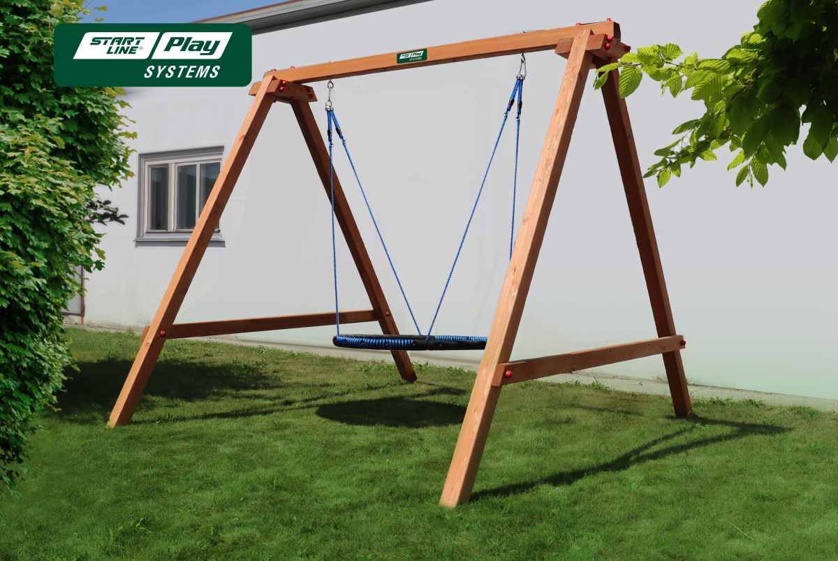 Качели деревянные SLP SYSTEMS 2 секции. Изготовлены из экологически-чистой, высушенной древесины. Цвет выкраски- Стандарт. Помогает защитить каркас от внешних воздействий. Все металлические детали прочно закреплены и оцинкованы. По желанию вы всегда сможете дополнить комплектацию - приобрести у нас другие виды сидений и разнообразить игры вашего ребенка. Качели будут развивать силу мышц способствовать здоровому физическому развитию, заряжать позитивными эмоциями и дарить хорошее настроение. Качели-гнездо имеет удобную, круглую форму с мягкой рамой для смягчения возможных ударов, не смотря на компактный размер 1080 х 835 x 75 мм разрешается максимальная нагрузка на изделие до 150 кг.
