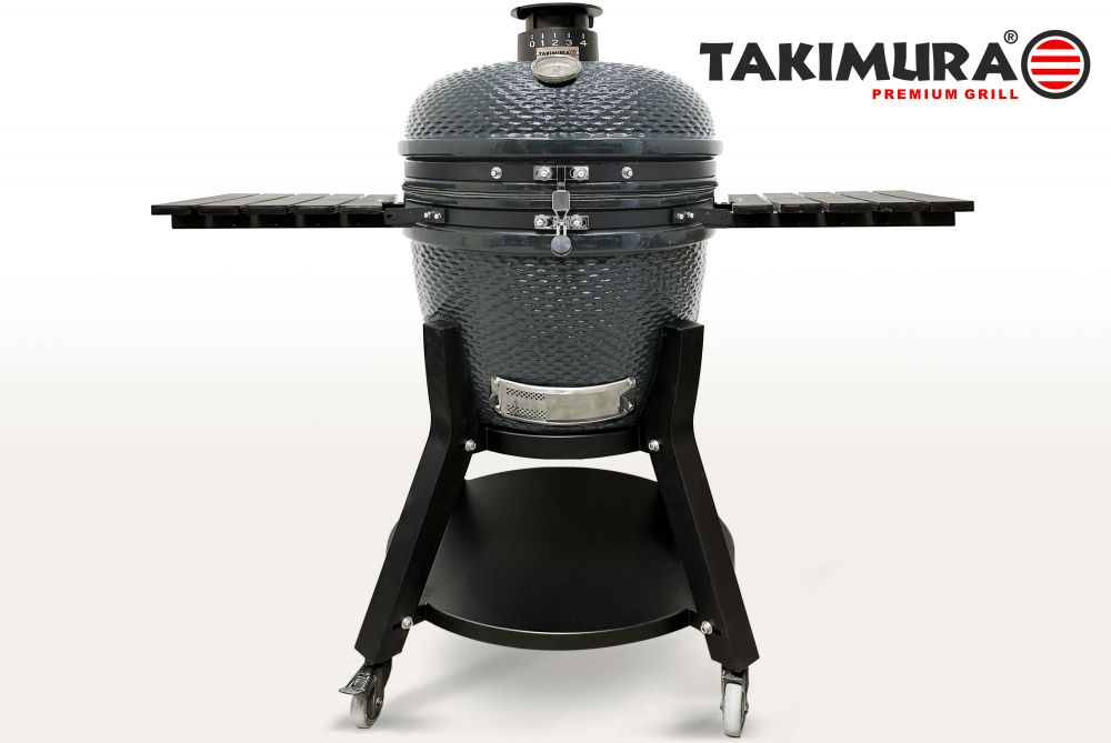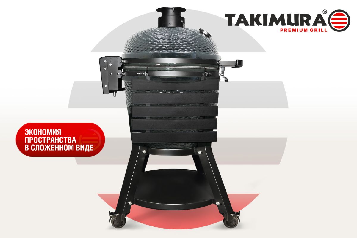 Керамический гриль Takimura — совершенство вкуса и технологий Погрузитесь в мир изысканного кулинарного искусства с керамическими грилями премиальной серии Takimura — воплощением элегантности и передовых технологий, созданных для тех, кто ценит аутентичный вкус блюд, приготовленных на углях. Каждый гриль серии Takimura — это не просто устройство, а настоящий шедевр, сочетающий в себе японские традиции и инновации, который открывает новые горизонты для кулинарных экспериментов. Керамический гриль Takimura — это высокотехнологичное устройство, обеспечивающее бескомпромиссное качество приготовления блюд и универсальность использования. Каждый гриль Takimura проходит индивидуальный контроль качества. Приобретая гриль Takimura, вы можете быть уверены в том, что получаете не только стильный, но и надежный инструмент для приготовления изысканных блюд. Каждый гриль имеет серийный номер, что подтверждает эксклюзивность и высокие стандарты производства. Takimura в графитовом цвете представляет собой истинное произведение искусства, гармонично соединяющее в себе функциональность и эстетическую привлекательность. Элегантные линии корпуса, обрамленные легким блеском керамики и графитовый цвет придает устройству глубину и характер, позволяя ему органично вписываться в любой интерьер — от уютного загородного домика до профессиональной кухни. Гриль Takimura - идеальный выбор для большой семьи или дружной компании, чтобы наслаждаться BBQ шедеврами вместе. Гриль-мечта для самых больших компаний, на котором можно приготовить огромные порции! Корпус гриля из сверхпрочной керамики нового поколения гарантирует долговечность и отличные теплоизоляционные свойства. Высококачественные материалы и передовые технологии открывают безграничные возможности для приготовления разнообразных блюд, превращая ужин в гастрономическое событие. Система подъема крышки с автоматической фиксацией купола в любом из доступных положений обеспечивает удобство и безопасность использования гриля. Армированный термостойкий уплотнитель обладает высокой огнеупорностью и термической стойкостью, что повышает теплоизоляцию и устойчивость к износу. Гриль оснащен трехуровневой системой решеток. Верхняя решетка выполняет функцию гриля, средняя служит подставкой для вока, казана или камня для пиццы, нижняя - керамический жароотсекатель, который обеспечивает равномерное распределение тепла. Чугунный регулятор тяги позволяет точно настраивать интенсивность жара, а водонепроницаемый термометр профессионального уровня обеспечивает контроль температуры, что особенно важно для достижения идеального результата. Мобильная подставка с колесами, оснащенными фиксаторами, выполнена из стали, что гарантирует высокую надежность и легкость перемещения гриля. Подставка оснащена стальной полкой для удобного размещения аксессуаров и кухонной утвари. Складные боковые столики с ос...
