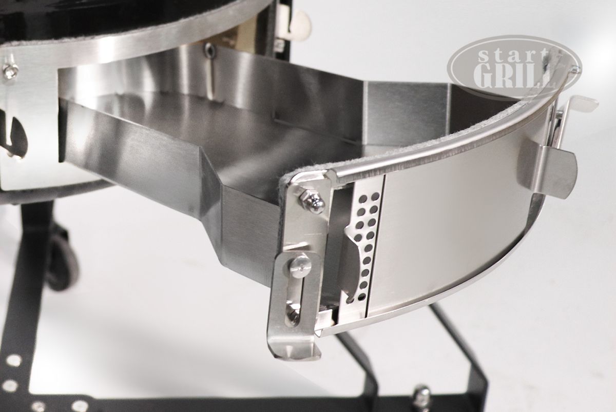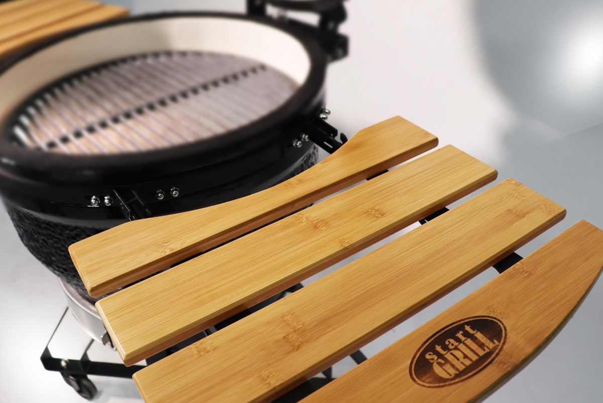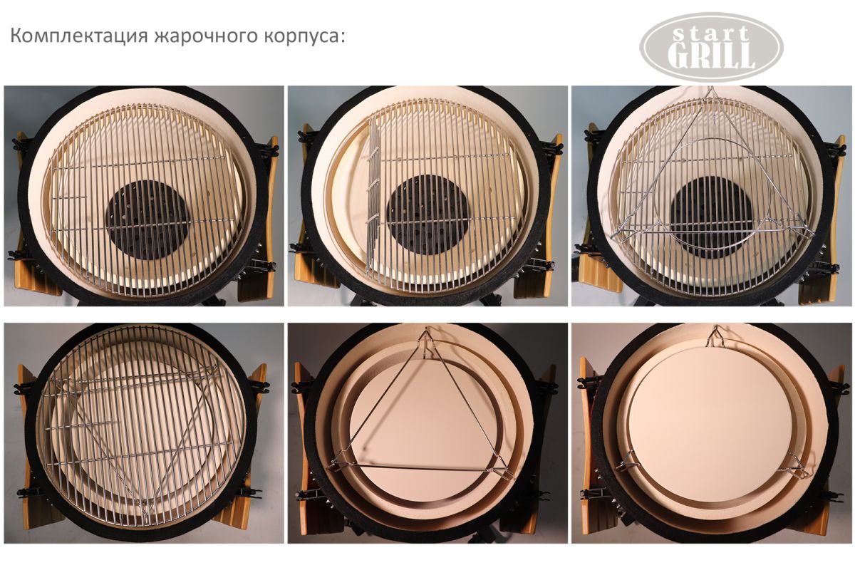 Start Grill PRO — новая премиальная серия керамических грилей Start Grill. Преимущества Start Grill PRO nbsp;nbsp;nbsp;nbsp;• Улучшенный состав керамической смеси. Помимо того, что он влияет на долговечность и износостойкость гриля, он гарантирует еще более продолжительное сохранение тепла во время готовки; nbsp;nbsp;nbsp;nbsp;• Усиленные пружины крышки гриля. Ваш повар будет служить вам много лет; nbsp;nbsp;nbsp;nbsp;• Усовершенствованная конструкция тележки. Теперь она максимально устойчивая; nbsp;nbsp;nbsp;nbsp;• Новый регулируемый верхний чугунный клапан со шкалой регулировки тяги; nbsp;nbsp;nbsp;nbsp;• Высокоточный термометр с 4 зонами приготовления; nbsp;nbsp;nbsp;nbsp;• Возможность регулировать боковые столики по радиусу. nbsp;nbsp;nbsp;nbsp;nbsp;nbsp;SG 22 PRO оснащен современной системой EASY CLEAN, которая представляет собой съемный нижний клапан подачи воздуха со встроенным в него лотком для сбора золы. Это позволяет легко и быстро очистить ваш гриль после готовки. Удобные крючки для аксессуаров на боковых столиках помогут оптимизировать пространство и сделать процесс приготовления блюд максимально комфортным.