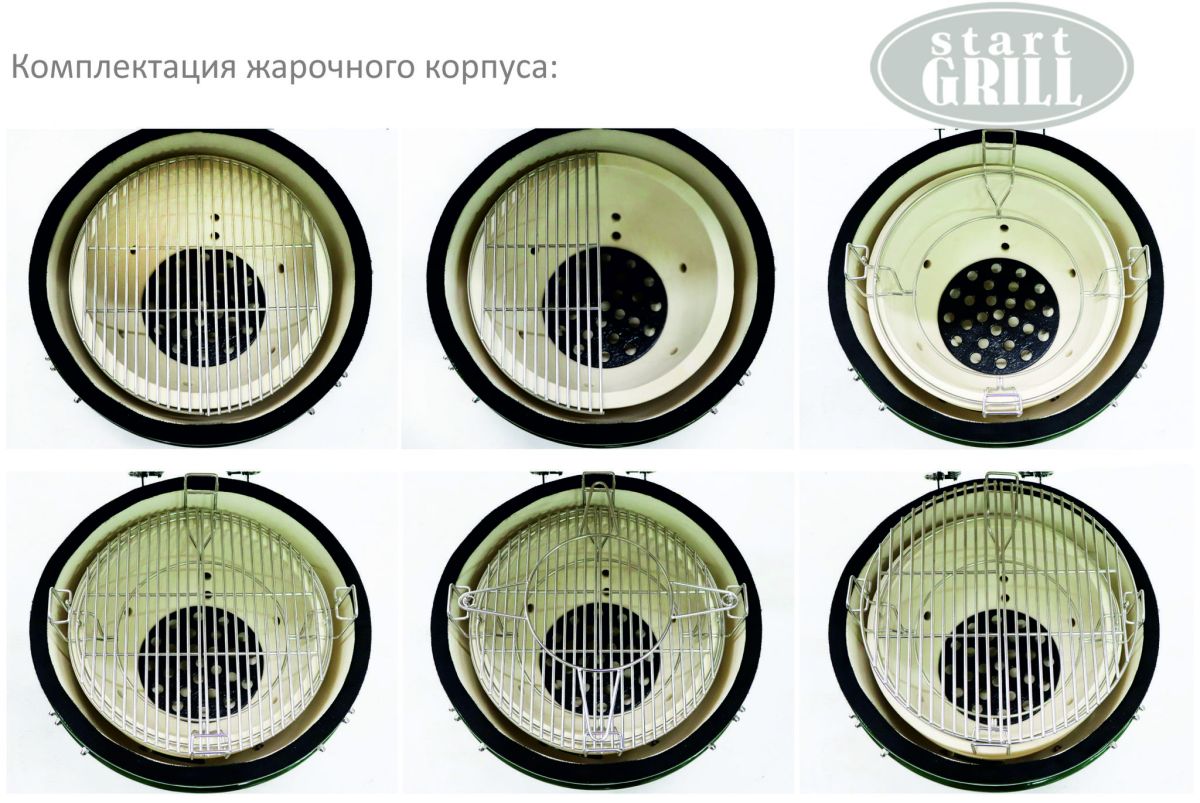 Керамический гриль со стеклянным окошком Start Grill 22. Модель одновременно сочетает в себе функции гриля, барбекю, мангала, коптильни, духовки, печи для пиццы и тандыра. Гриль выполнен из экологически чистой толстостенной керамики и очень прост в использовании, потребуется совсем немного времени, чтобы подготовить его к работе и начать готовить настоящие кулинарные шедевры. Керамические грили Start Grill – идеальное соотношение цены, качества и функционала. При производстве гриля Start Grill используются самые прочные и долговечные материалы, которые не боятся ни коррозии, ни перепадов температур и позволяют сохранить презентабельный вид изделия на многие годы. Перед сборкой гриля ознакомьтесь с инструкцией, которая входит в комплектацию модели, а также следуйте всем правилам эксплуатации.