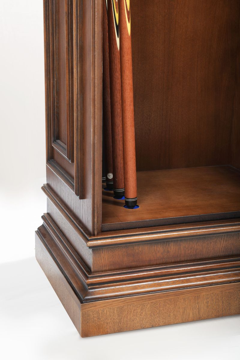 Напольная киевница «Гроссмейстер» выполнена в едином стиле с бильярдным столом. Этот ансамбль был разработан и изготовлен персонально для самого титулованного шахматиста и величайшего чемпиона мира – Анатолия Евгеньевича Карпова – символа побед и достижений. Киевница «Гроссмейстер» имеет форму пенала. Модель предназначена для размещения четырех киев, конструкцией предусмотрены полочки для хранения шаров и подвес для треугольника. Киевницаnbsp;nbsp;станет удобным и многофункциональным украшением интерьера респектабельной бильярдной комнаты.