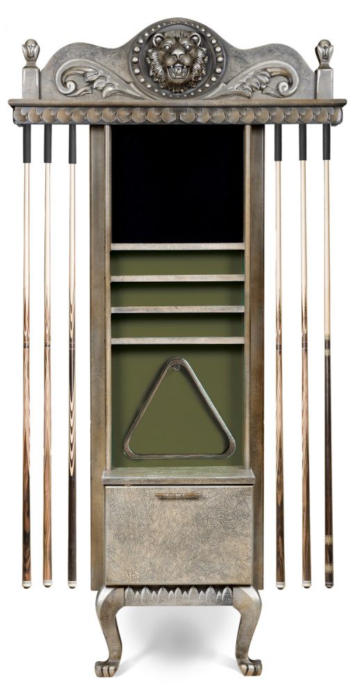 Модель настенная, предназначена для 6 киев, позволяет разместить треугольник, мелки, а также бильярдные шары. Материал клен. Есть возможность выбрать цвет из палитры Фабрики «Старт» Количество киев: 6 Высота: 2345 мм Ширина: 1200 мм Глубина: 300 мм Материалы: клён Выкраска: Авторское патинирование серебряной поталью