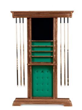 Модель напольная, предназначена для 6 киев, позволяет разместить треугольник, мелки, а также бильярдные шары. Материал массив ясеня / клен. Есть возможность выбрать цвет из палитры Фабрики «Старт» Количество киев: 6 Высота: 2200 мм Ширина: 1460 мм Материалы: ясень или клен Глубина: 205 мм Вес: 88 кг