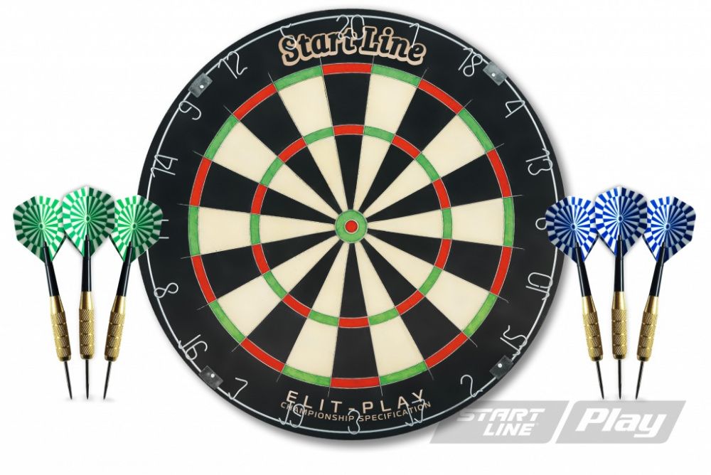 Комплект для игры в дартс Elit-Play профессионального уровня, соответствует турнирным требованиям. Материал мишени – кенийское сизалевое волокно. Острый нож границы секторов, вращающееся кольцо нумерации. Комплект включает собранные дротики с латунным покрытием высокого качества 6 шт x 18 гр #40;3 дротика с синим хвостовым оперением и 3 с зеленым хвостовым оперением#41;, а также крепление для подвешивания к стене. Комплект Elit-Play идеален для клубов, развлекательных заведений, проведения спортивных турниров.