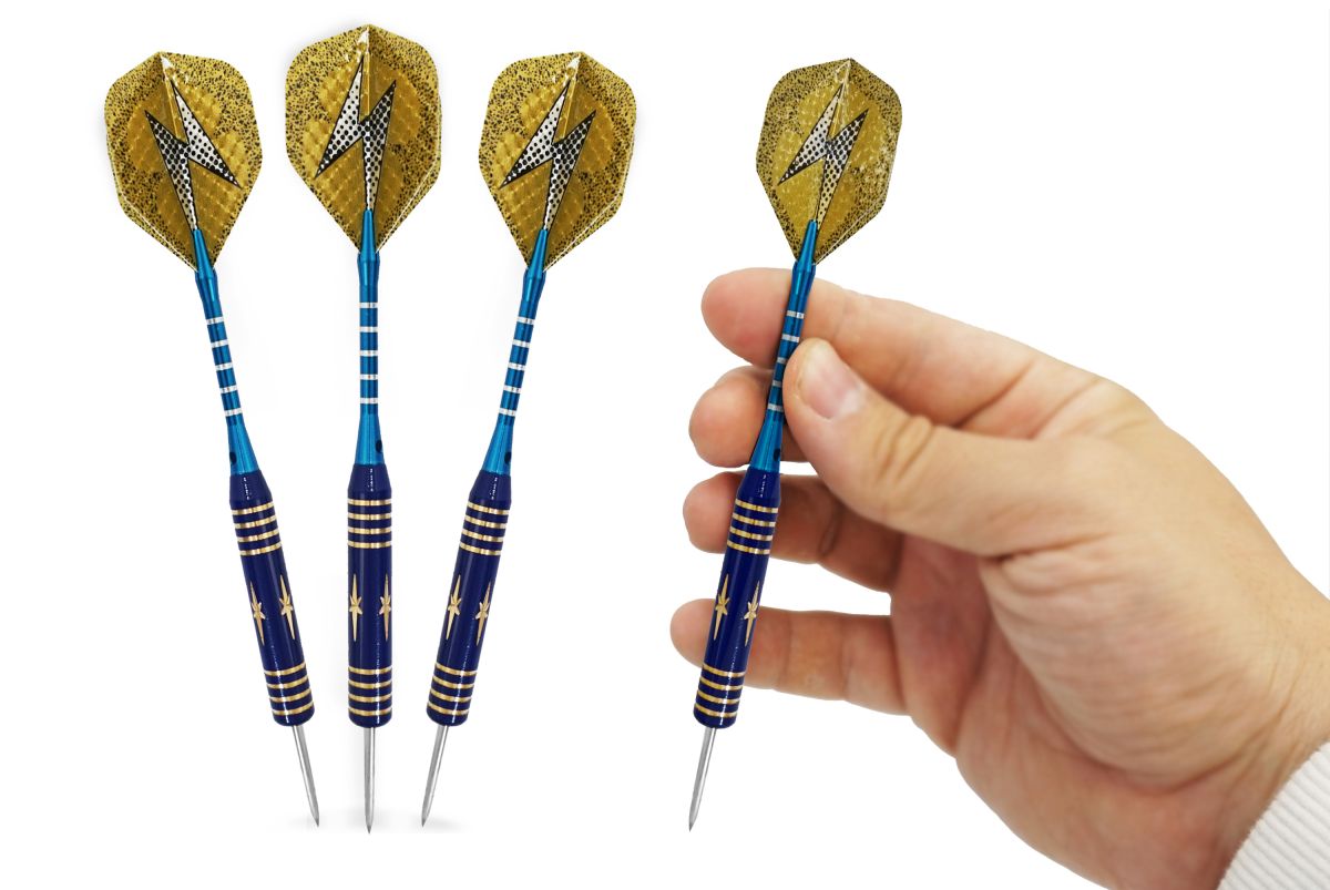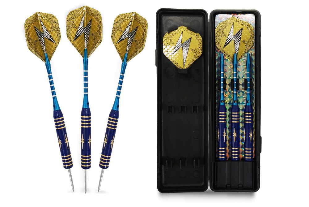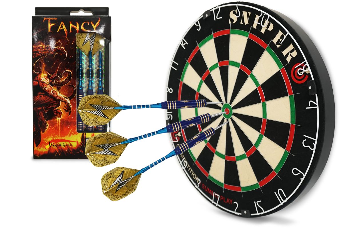 Дротики являются важнейшим элементом для игры в дартс, от их особенностей напрямую зависит уровень и качество игры. Комплект дротиков для игры в дартс среднего уровня из игровой серии FANCY. Комплект состоит из 3 дротиков весом 23 гр, баррель которых изготовлен из латуни. Латунные дротики являются общедоступным инструментом как для любителей, так и для профессионалов. Алюминиевые хвостовики в сочетании с оперением дают жесткую но при этом легкую конструкцию. Стальные иглы легко и устойчиво “входят” в мишень, что обеспечивает более точные и стабильные броски, исключая вероятность отскока. Комплект состоит из 3 баррелей, 3 хвостовиков, 3 оперений и кейса. Разборная конструкция дротиков позволяет заменить его хвостовик и оперение по мере изнашивания оборудования.