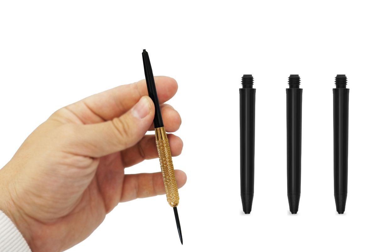 Хвостовик - часть дротика, которая отвечает за выравнивание дротика в полете. От того, как верно будет подобран хвостовик, зависит изменение траектории полета. Набор нейлоновых хвостовиков подходит для среднего уровня игры. Комплект включает в себя три непрозрачных хвостовика, изготовленных из нейлона черного цвета. Каждый хвостовик универсален, имеет стандартную резьбу и длину 35 мм.