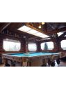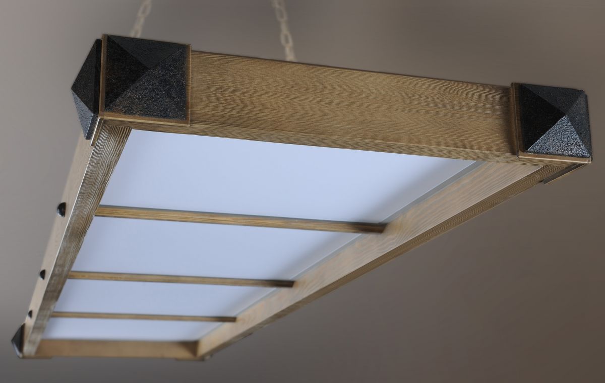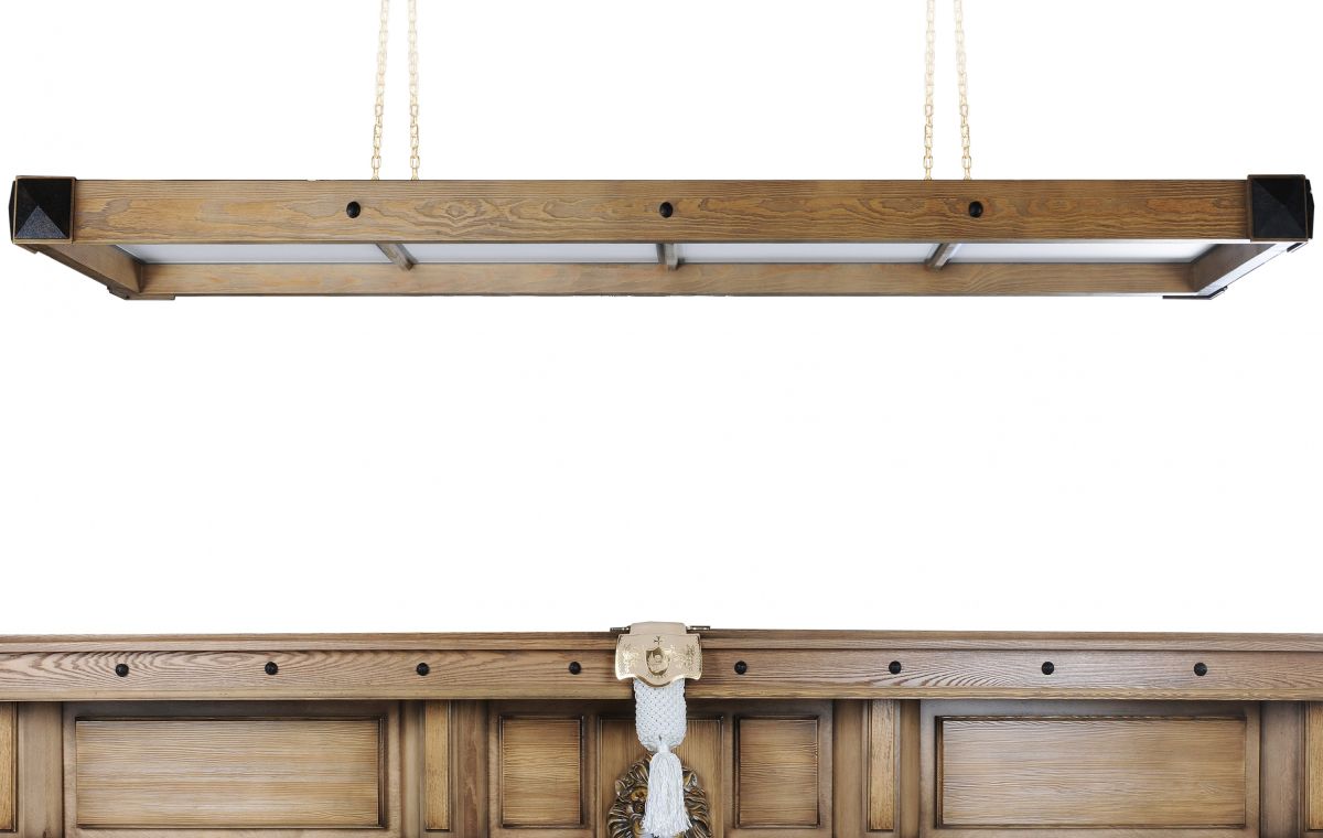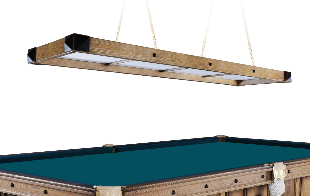 Светильник выполнен в соответствии с эксклюзивным дизайном бильярдной коллекции «Охота». Модель состоит из четырех секций, дает равномерное освещение бильярдных столов 11 и 12 футов. Мягкий поток света обеспечивает равномерное и бестеневое освещение стола и максимально комфортные условия для игроков. Корпус светильника выполнен из массива сосны.Конструкция крепится к потолку с помощью подвесов, входящих в крепежный комплект. Условные схематические обозначения: L — длина лампы / 2260 мм d — ширина лампы / 1100 мм D — толщина лампы / 160 мм Н — мах высота крепления / 1000 мм C — расстояние между осями / 1280 мм