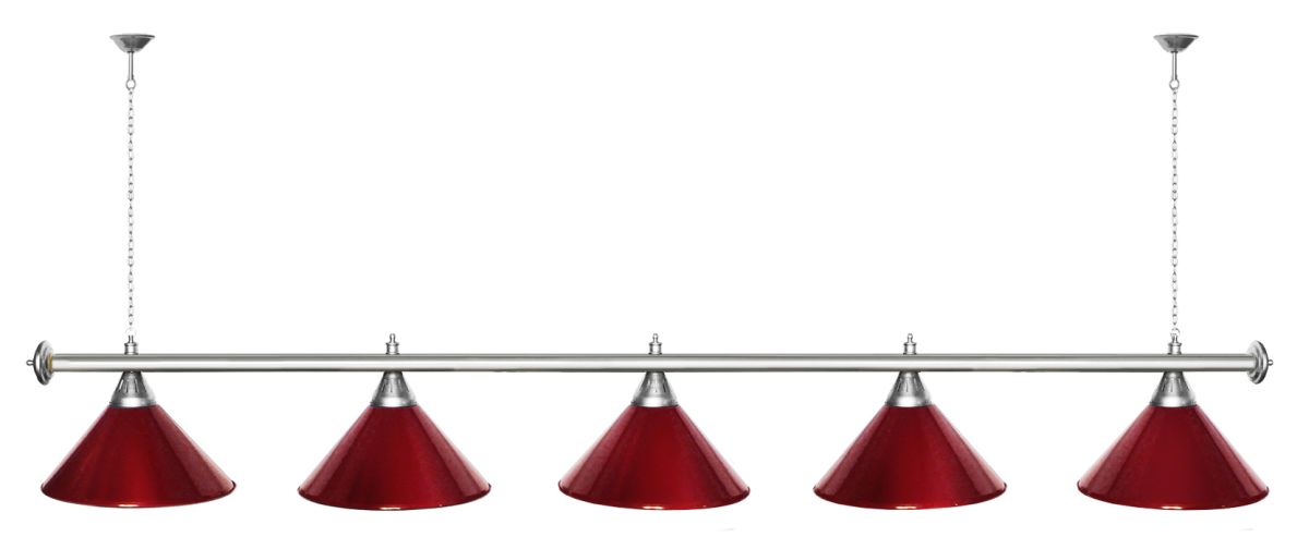 Светильники Startbilliards производства ФС «Горизонт» с 5-ю плафонами комплектуются к столам 10 футов. Укомплектованы цельной металлической штангой с полимерным покрытием. Штанга изготовлена из цельной трубы, что исключает искривление конструкции. Применение керамических патронов #40;Е27#41; увеличивает срок эксплуатации светильника. Металлические плафоны крепятся с помощью зажимных пластин. Длина подвесной цепи 100 см — оптимальное расстояние для расположения источника света над игровым полем стола. В комплект включены две потолочные чашки. Условные схематические обозначения: Н — общая высота светильника / 1420 мм L — общая длина светильника / 2420nbsp;nbsp;мм D — высота плафона / 300 мм d — диаметр плафона / 370 мм C — расстояние между осями / 500 мм Штанга и плафоны поставляются в отдельных упаковках.