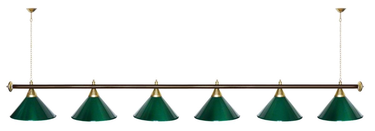 Лампа STARTBILLIARDS 6 пл. (плафоны медь,штанга красная,фурнитура золото)