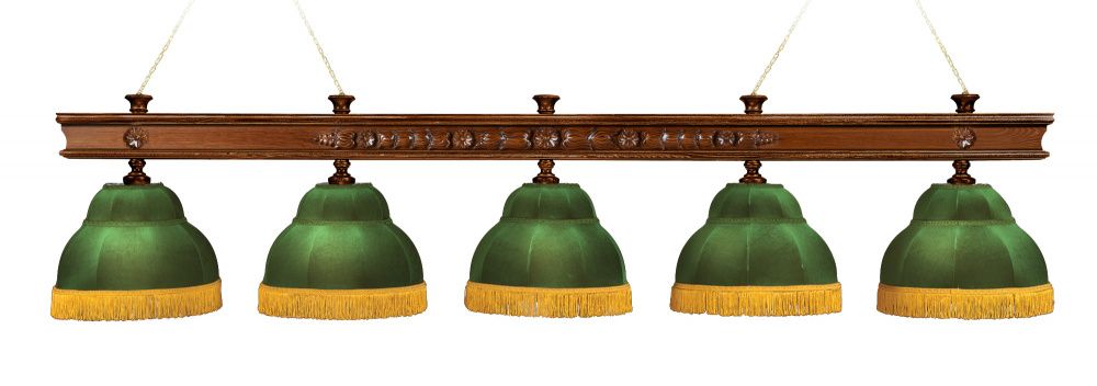 Лампа Ампир 5пл. ясень (№1,бархат зеленый,бахрома желтая,фурнитура золото)