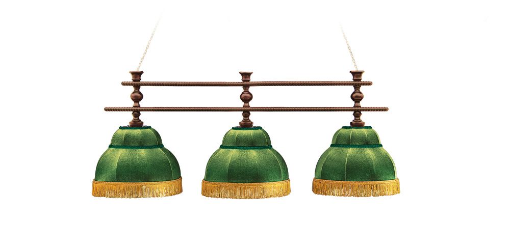 Лампа Аристократ-2 3пл. ясень (№6,бархат зеленый,бахрома желтая,фурнитура золото)
