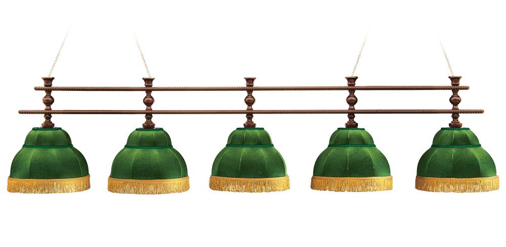 Лампа Аристократ-2 5пл. ясень (№6,бархат зеленый,бахрома желтая,фурнитура золото)