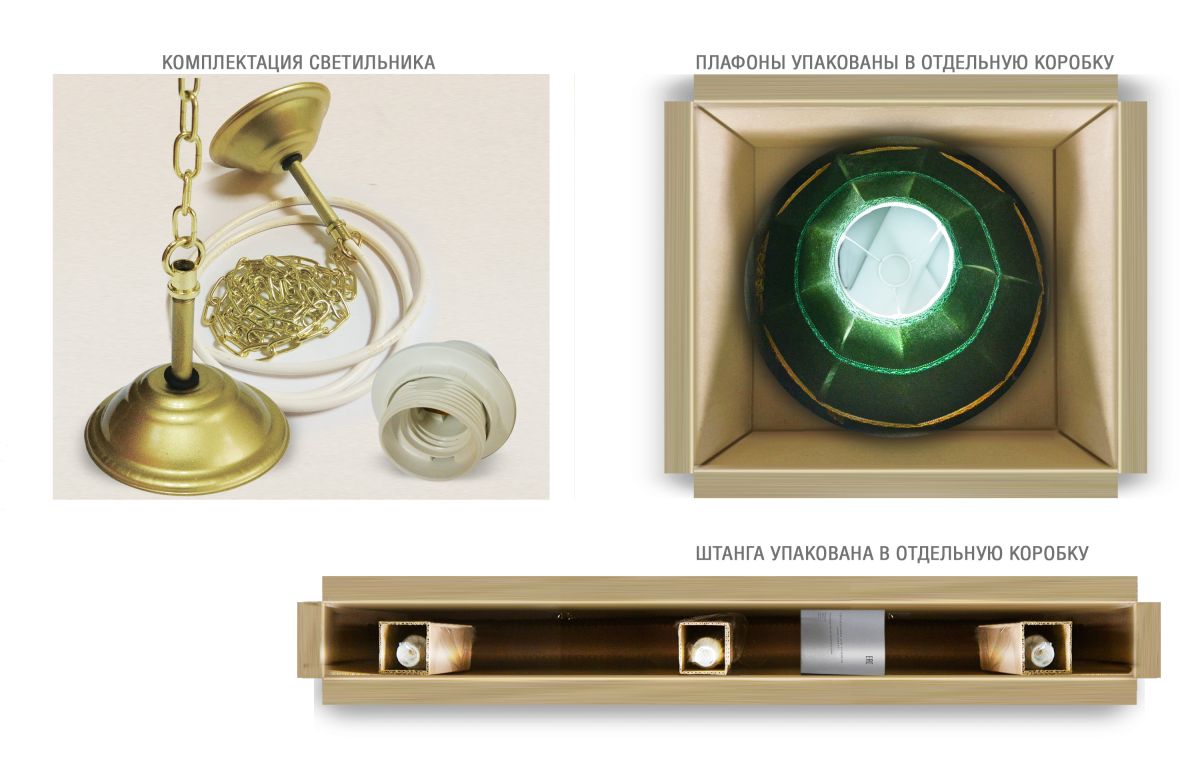 Лампа Аристократ-3 3пл. береза (№3,бархат зеленый,бахрома желтая)