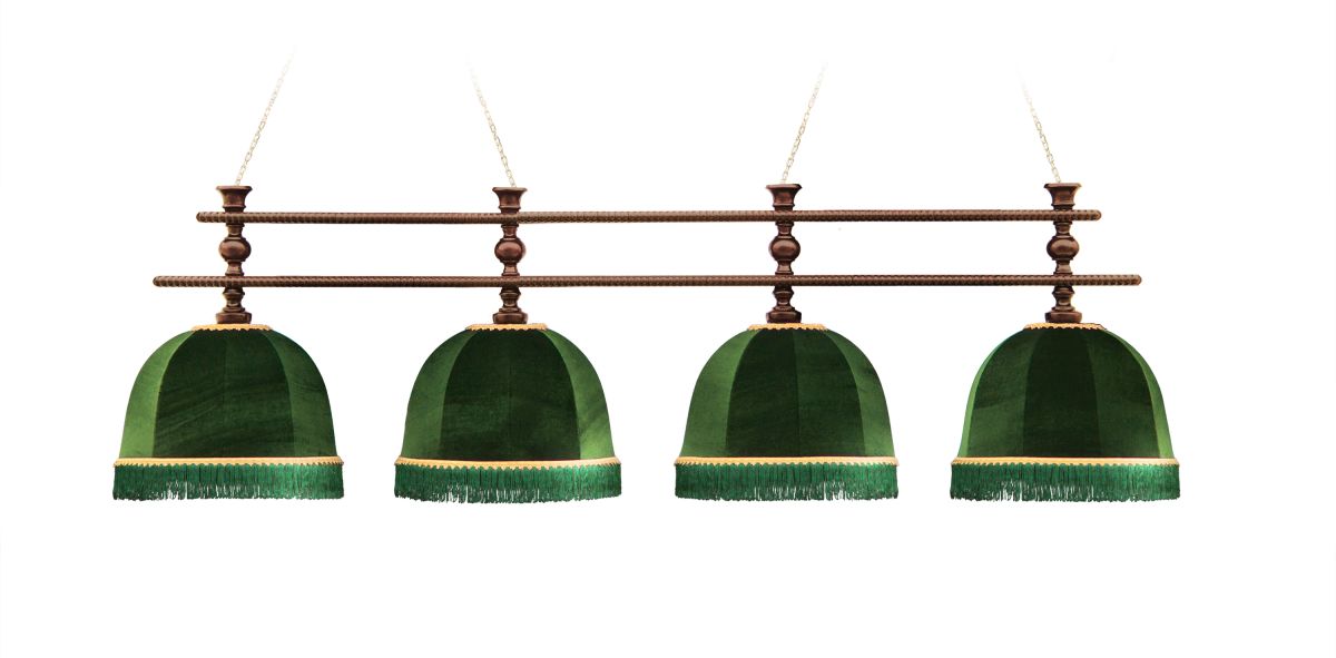 Лампа Аристократ-Люкс 2 4пл. ясень (№3,бархат зеленый,бахрома желтая)
