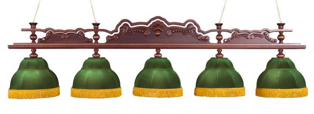 Лампа Император 5пл. клен (№3,бархат зеленый,бахрома желтая,фурнитура золото)