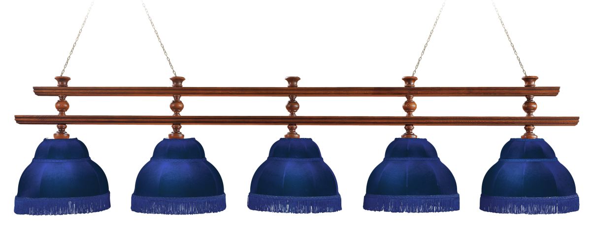 Лампа Ливерпуль 5пл. ясень (№4,бархат синий,бахрома синяя,фурнитура золото)