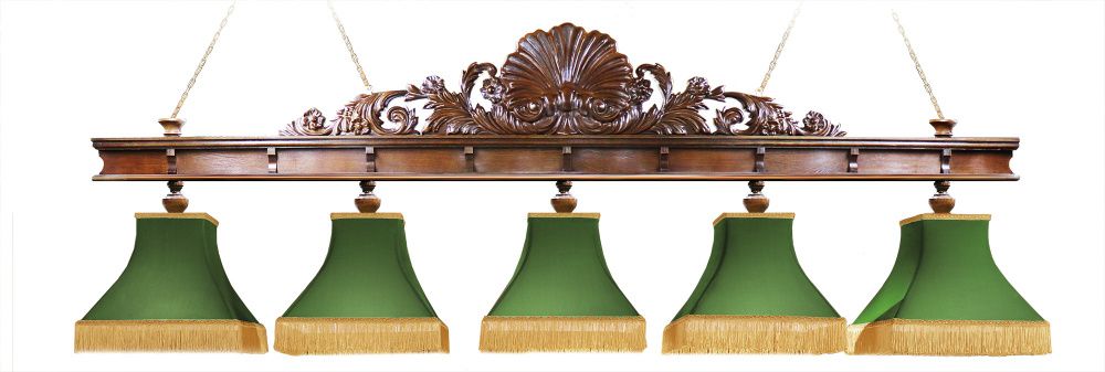 Лампа Морская 5пл. ясень (№11,бархат зеленый,бахрома желтая,фурнитура золото)