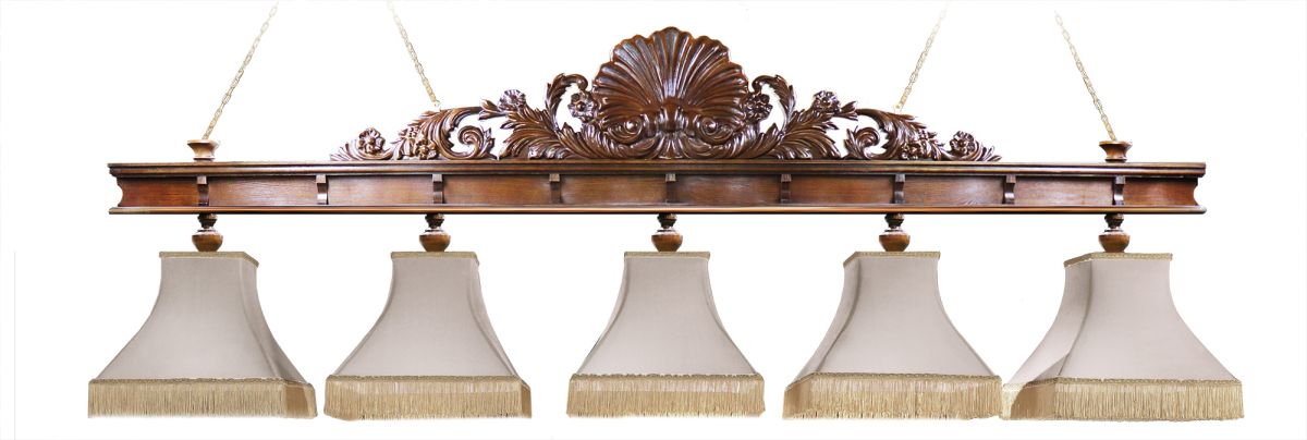 Лампа Морская 5пл. ясень (№3,бархат зеленый,бахрома желтая,фурнитура золото)