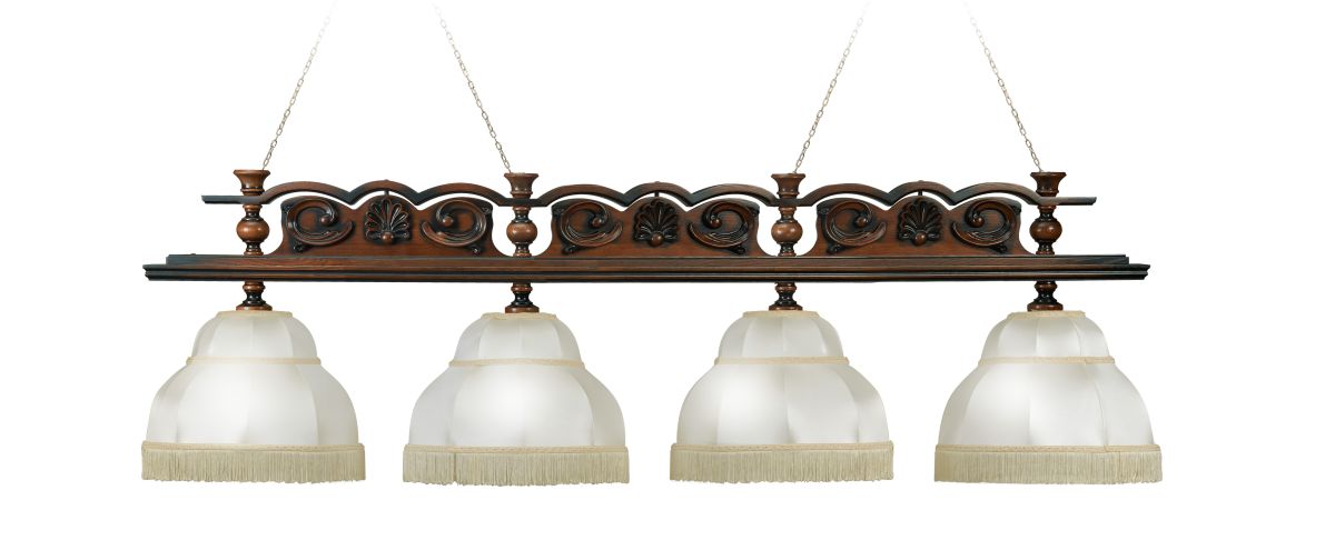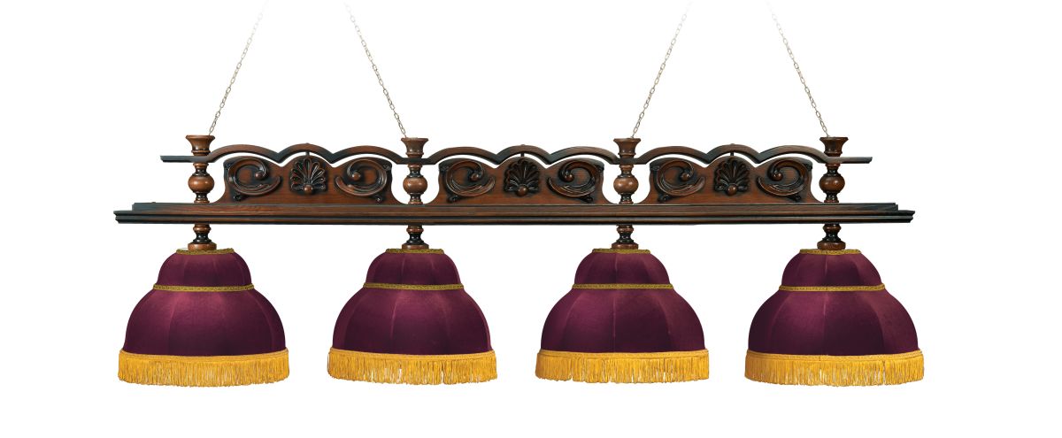 Лампа Ренессанс 4пл. ясень (№5,бархат зеленый,бахрома желтая,фурнитура золото)