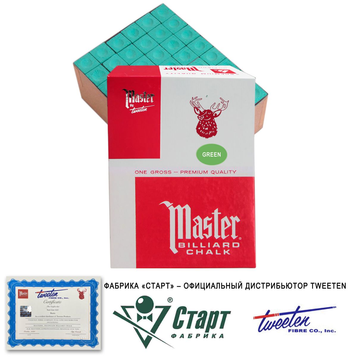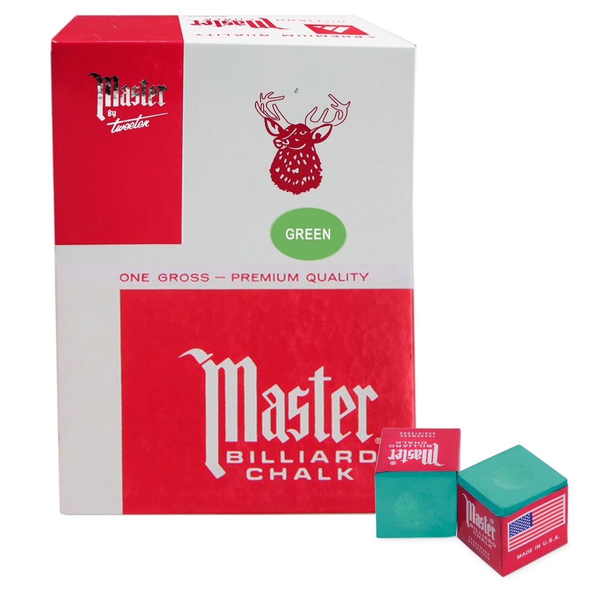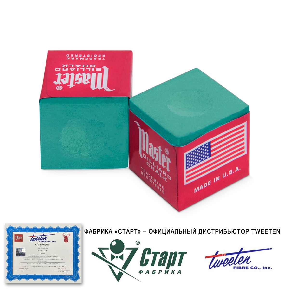 Американская компания Tweeten Fibre Co. производит самую популярную на сегодняшний день марку бильярдного мела в мире. Мел Master несколько мягче по сравнению со своим «собратом», мелом Triangle. Master мало крошится, легко наносится на наклейку и образует на ней тонкий защитный слой, который держится в течение долгого времени. Обычно его хватает для совершения двух-трёх ударов без риска «кикса», но, конечно, мелить наклейку лучше перед каждым ударом по бильярдным шарам. Мел Master обладает более твёрдым, чем у обычного мела, строением, отличаясь от него и по составу. Его рекомендуют плавно и равномерно наносить тонким слоем на кожаную наклейку. При ударах, смещенных относительно центра бильярдного шара, мел используется как надежная защита от «кикса».nbsp;nbsp; Мел Master производят с применением химических соединений на кремнозёмной и силикатной основе, имеющих совершенно иной, чем у школьного мела состав: в него входит диоксид кремния #40;кварцевый песок из месторождения вблизи Чикаго в штате Иллинойс#41;, абразивы