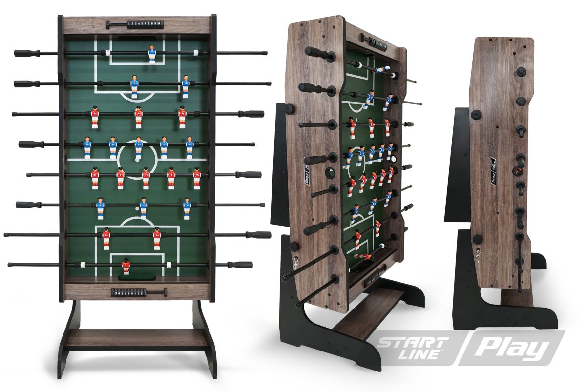 Столы COMPACT 55 NEW разработаны и изготовлены специалистами компании Start Line PLAY. 5-ти футовые игровые столы универсального дизайна и качественной отделки выпускаются в трех вариантах выкраски: Анкор, Аризона, Йоркшир. Корпус и игровое поле выполнены из высокопрочных материалов. Модель привлекательна своей компактностью, в сложенном виде она занимает минимальную площадь. Конструкция позволяет легко установить стол практически в любом месте, а возможность трансформации поможет быстро привести стол в игровое положение и сэкономить место при хранении. Монтаж игрового стола прост, его легко собрать самостоятельно, в комплекте предусмотрена инструкция по сборке. Настольный футбол COMPACT 55 NEW имеет высокие игровые характеристики и универсален для установки в офисе, квартире или загородном доме. Модель предназначена для игры детей, подростков и взрослых. Этот игровой стол обязательно станет центром активных семейных игр и дружеских турниров. Приятной вам игры!