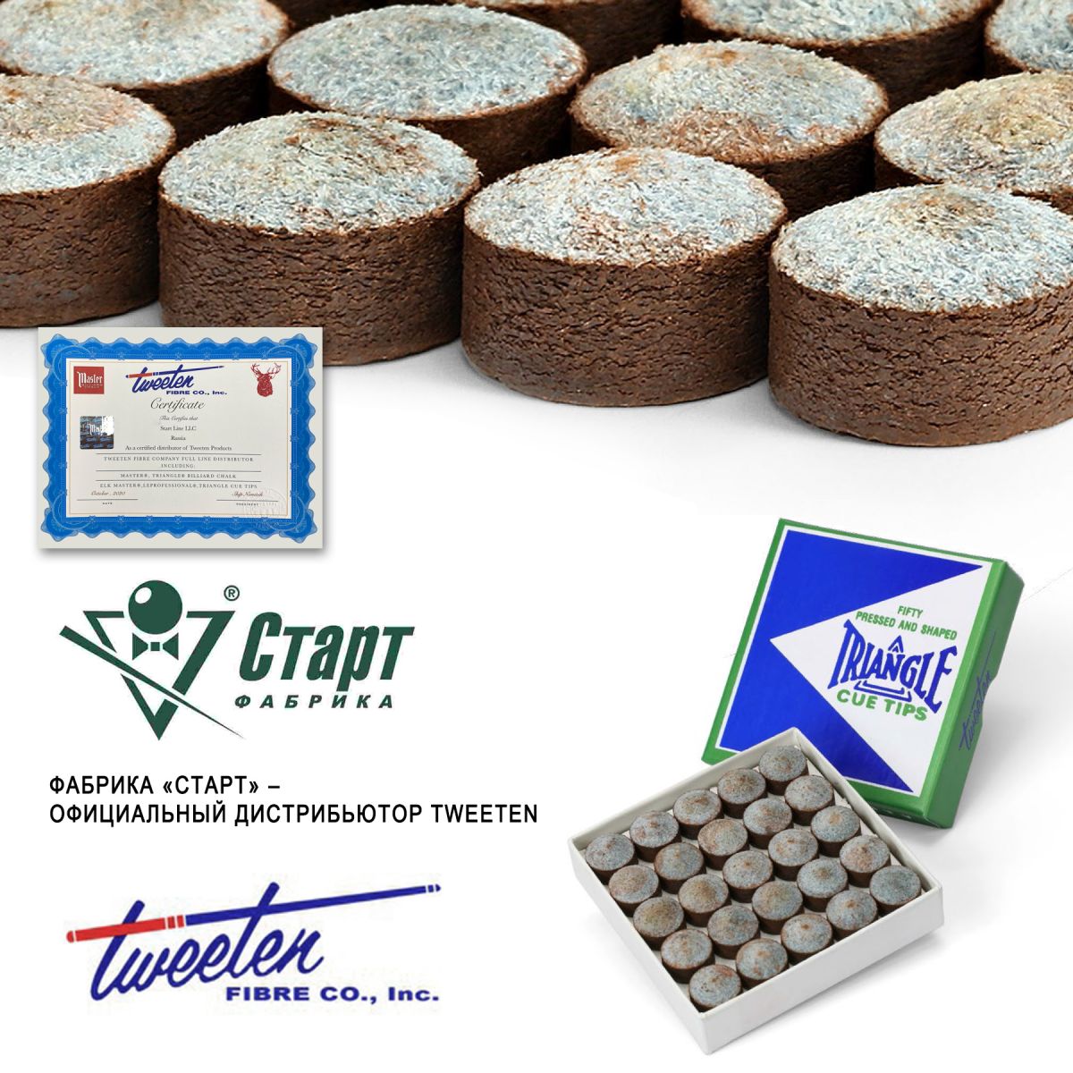 Triangle —nbsp;nbsp;экономичные и надежные наклейки. Заслужили доверие и популярность среди игроков в бильярд. Вся кожа для наклеек Tweeten тщательно отбирается, затем подвергается дублению. В бильярдных Дикого Запада любили рассказывать истории о том, что кожу для идеальных наклеек выбирали по способности останавливать пулю. Определенная доля истины в этих словах есть, поскольку прошедшая хромовое дубление кожа приобретает чрезвычайную прочность, повышаются её износостойкие качества и снижается риск деформации. Испытания с помощью прибора дюрометра показали, что физическая твёрдость по Шору у наклеек Triangle по шкале A составляет 73,5 единицы. Для сравнения: аналогичный показатель у автомобильной шины равен 70.
