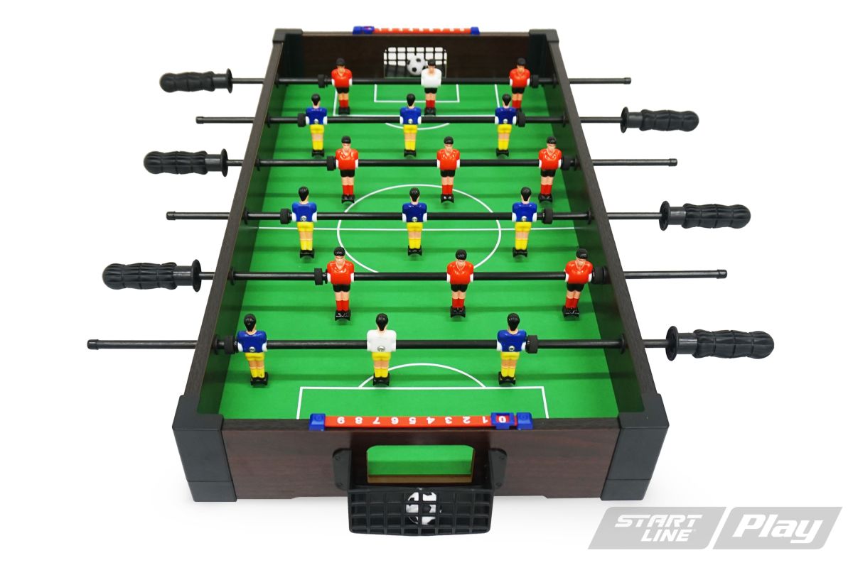 Компактная модель настольного футбола JOYFUL в классическом дизайне станет любимым развлечением веселой компании. Отлично подойдет как детям так и взрослым. Корпус настольного футбола и игровое поле изготовлены из прочного материала МДФ, что обеспечивает долговечность и надежность конструкции. Настольный футбол JOYFUL прекрасно подойдет для игры и хранения даже в самой небольшой комнате, ведь он имеет компактные размеры, позволяющие легко выделить место в любом помещении. При своих компактных размерах модель оснащена тремя штангами на каждого игрока, что делает игру еще более захватывающей и увлекательной. Модель JOYFUL укомплектована удобными механическими счетами, а также 2 футбольными мячами. Штанги и футболисты поставляются в собранном виде. Играйте в настольный футбол JOYFUL, где угодно, его компактный размер позволит с легкостью взять игру с собой.