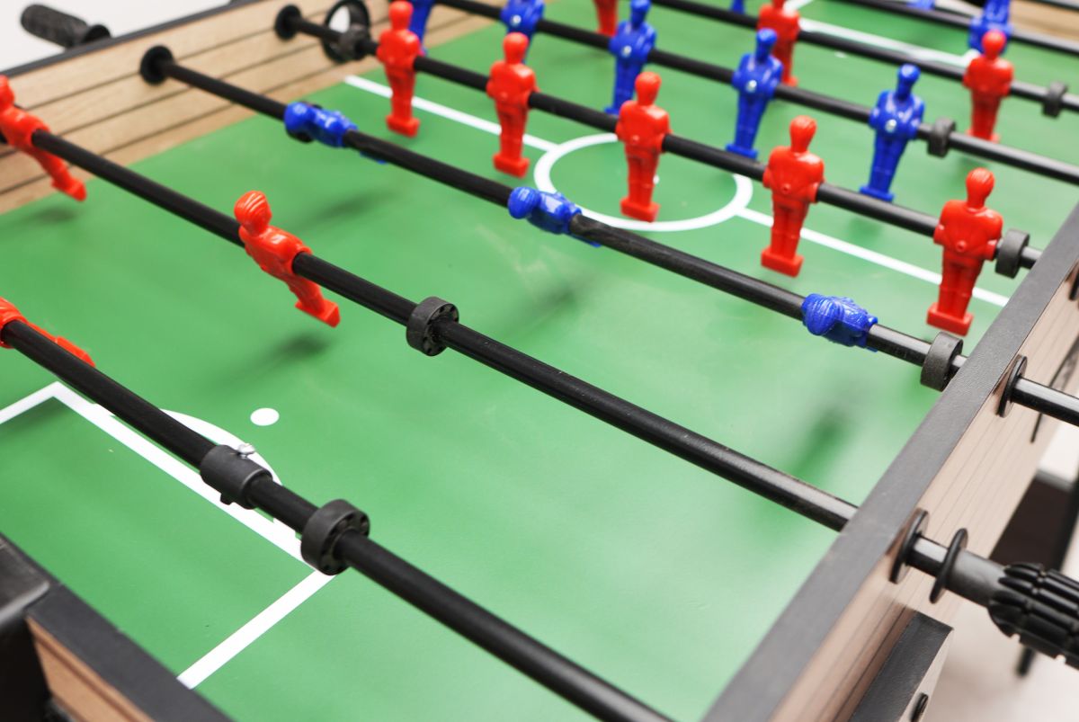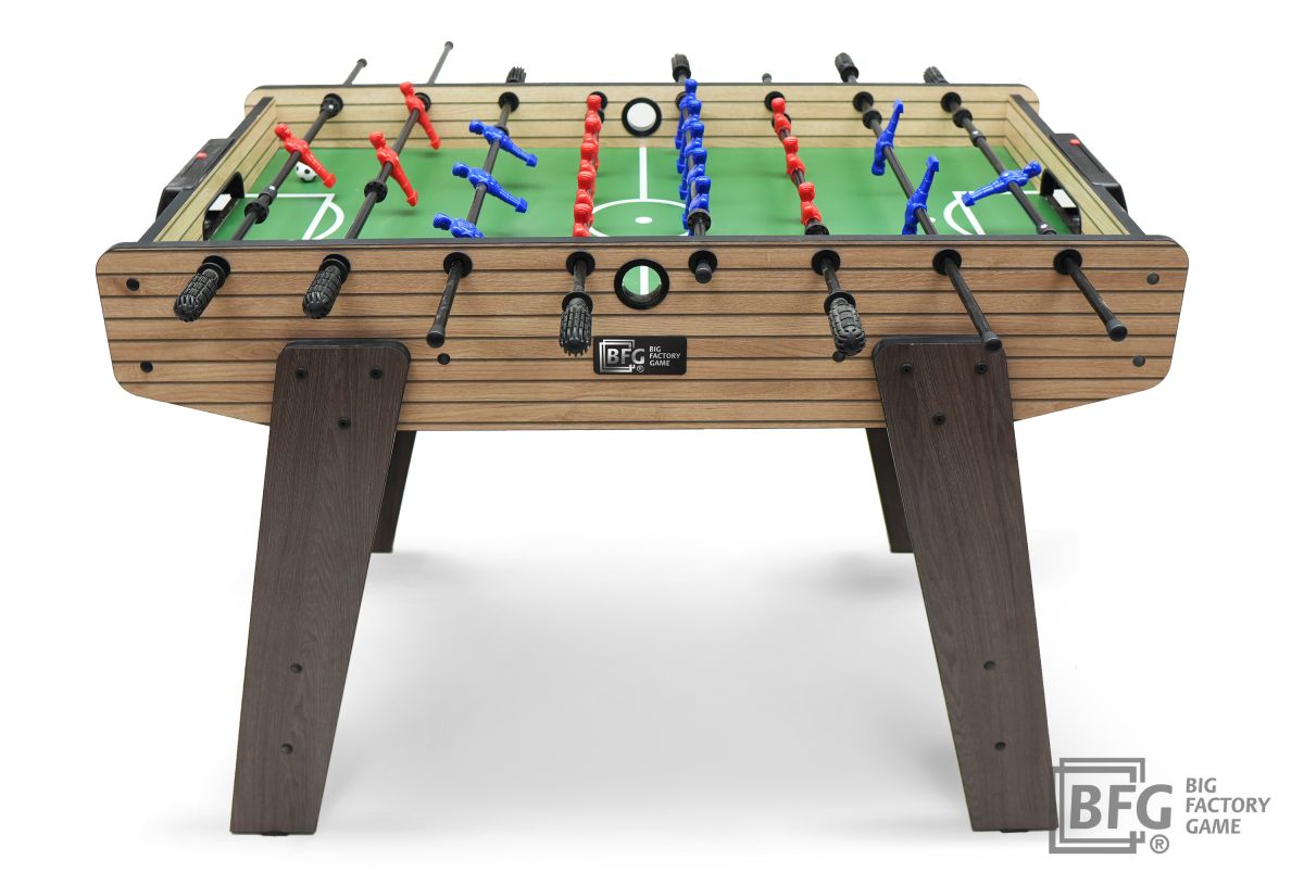 Настольный футбол BFG Steller — это отличная игровая зона для вашего дома, офиса или клуба. Модель создана для тех, кто ценит надежность, качество и яркие эмоции от динамичной игры. Игровой стол BFG Steller предлагает непревзойденную прочность и стабильность. Игровой корпус обладает исключительной устойчивостью к нагрузкам и ударам, гарантируя долговечность даже в самом азартном матче. Прочное и надежное крепление мощных ног обеспечивает абсолютную устойчивость на любой поверхности. Вы можете полностью сосредоточиться на игре. Удобство и современный функционал: - Встроенные механические счетчики делают игру более организованной и азартной, позволяя легко следить за счетом. Навесные ворота упрощают сборку. - Штанги управленияnbsp;nbsp;с резиновыми рукоятками вращаются плавно и легко, обеспечивая полный контроль над игроками и точность передач и ударов. - Мы позаботились о том, чтобы сборка стола была быстрой и интуитивно понятной, без лишних сложностей. Настольный футбол BFG Steller эффектно выглядит благодаря продуманным линиям и акцентным деталям. Он станет стильным центром притяжения в любой игровой зоне. Стол имеет сбалансированные габариты, обеспечивающие комфортную игру для взрослых и детей. Выберите свой стиль — глубокий и солидный Индиго или лаконичный и сдержанный Тегола. Все элементы, от рукояток до креплений, выполнены из высококачественных материалов, что гарантирует безопасность и долгий срок службы. BFG Steller — это выбор тех, кто не ищет компромиссов между качеством, функциональностью и эмоциями от игры. Это надежная инвестиция в долгие годы удовольствия!