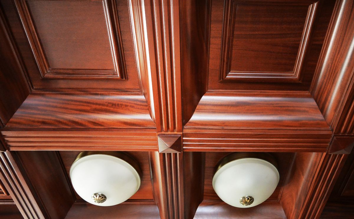 Узел кессонный используется для оформления всей площади потолка. Включает в себя рейки-направляющие и кессонные блоки. По периметру, в зоне стыков потолка и стен, монтируются с помощью доборных панелей. Может быть выкрашен в любой цвет из предоставленной палитры Фабрики.