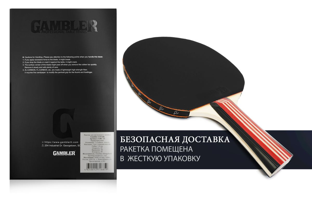 Ракетки Gambler – это уникальный вариант для любителей и профессионалов настольного тенниса. Ракетки Gambler от Start Line собраны из отдельных комплектующих, которые отличаются достойным качеством и прочностью. Ракетка Gambler 2 STAR с конической рукояткой имеет небольшой диаметр хвата и подойдет для игроков с узкой ладонью. Коническая рукоятка считается одной из самых удобных и популярных форм ручек. Основание ракетки Gambler 2 STAR выполнено из 7 слоев тополя — специально подобранная порода дерева. Чем больше слоёв, тем удобнее контролировать мяч, а скорость движения не будет слишком быстрой – это делает игру максимально комфортной. Ракетка оснащена спортивной твердой губкой толщиной 1,8 мм,c шипами внутрь, имеет сертификат ITTF . Показатель скорости 85 – ракетка подойдет для игры в нападении, вращение 80 – отлично подойдет для игры с подкрутками и подрезками, контроль 89 – позволит новичкам и любителям насладиться удобной игрой. Ракетки Gambler имеют хороший показатель контроля, улучшенные скорость и кручение. Нет ограничений по возрасту, ракетки могут быть использованы и детьми, и взрослыми.