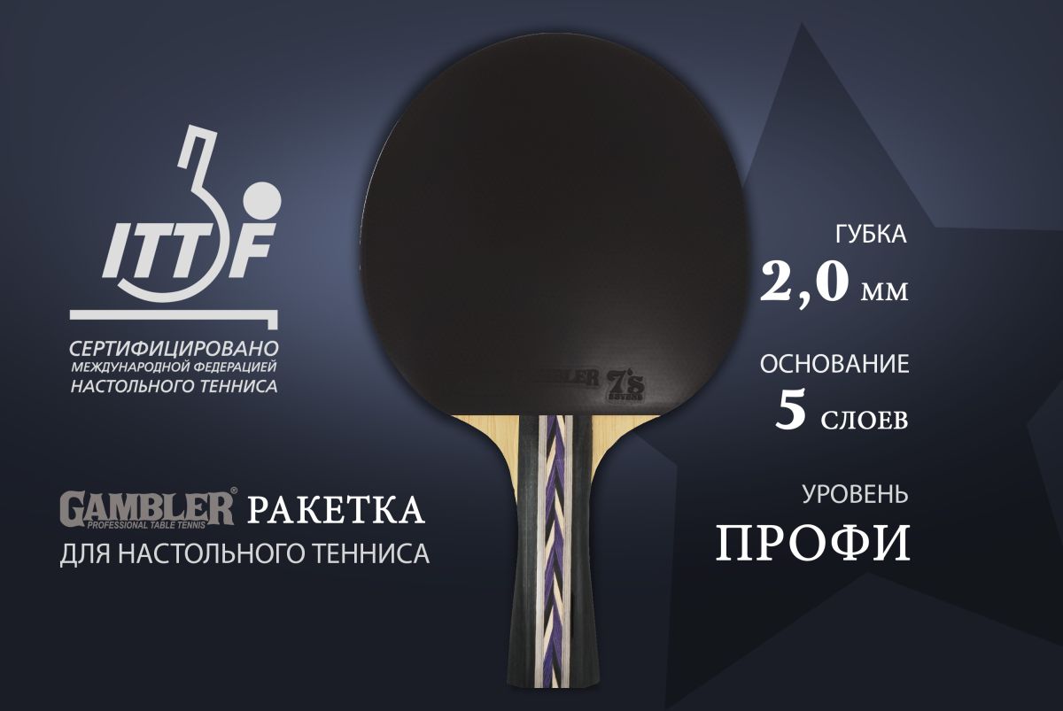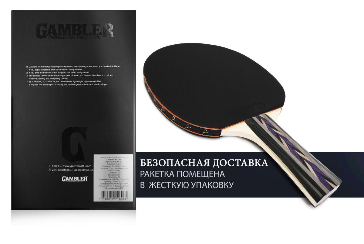 Ракетки Gambler – это уникальный вариант для любителей и профессионалов настольного тенниса. Ракетки Gambler от Start Line собраны из отдельных комплектующих, которые отличаются достойным качеством и прочностью. Ракетка Gambler 3 STAR с конической рукояткой имеет небольшой диаметр хвата и подойдет для игроков с узкой ладонью. Коническая рукоятка считается одной из самых удобных и популярных форм ручек. Основание ракетки Gambler 3 STAR выполнено из 5 слоев абачи — специально подобранная порода дерева. Такое количество слоев позволит играть с высокой скоростью мяча и сделать игру зрелищной. Ракетка оснащена спортивной твердой губкой толщиной 2,0 мм, c шипами внутрь, имеет сертификат ITTF . Показатель скорости 87 – ракетка подойдет для игры в нападении, вращение 83 – отлично подойдет для игры с подкрутками и подрезками, контроль 90 – позволит новичкам и любителям насладиться удобной игрой. Ракетки Gambler имеют хороший показатель контроля, улучшенные скорость и кручение. Нет ограничений по возрасту, ракетки могут быть использованы и детьми, и взрослыми.